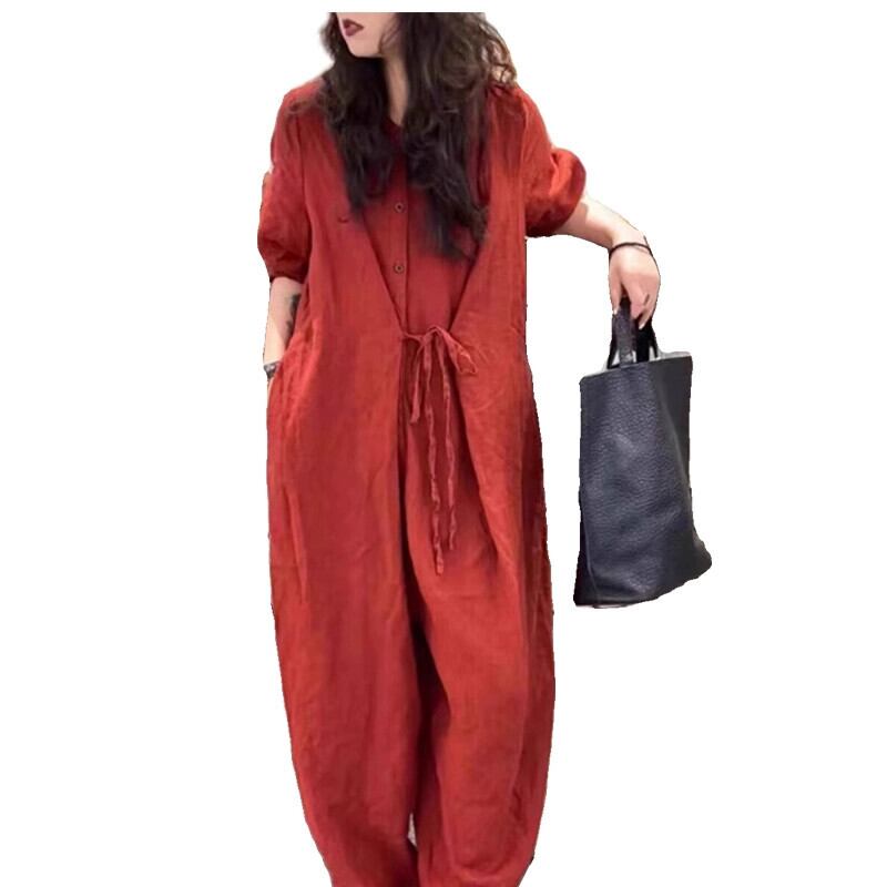 年と動物の年の赤いジャンプスーツの女性、春と秋、ルーズ、スリム、レトロ、怠惰なスタイル、カジュアルなワイドレッグジャンプスーツ レッド スプリング 春物 オータム 秋物 sine15633014440