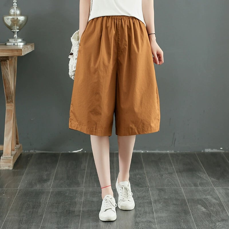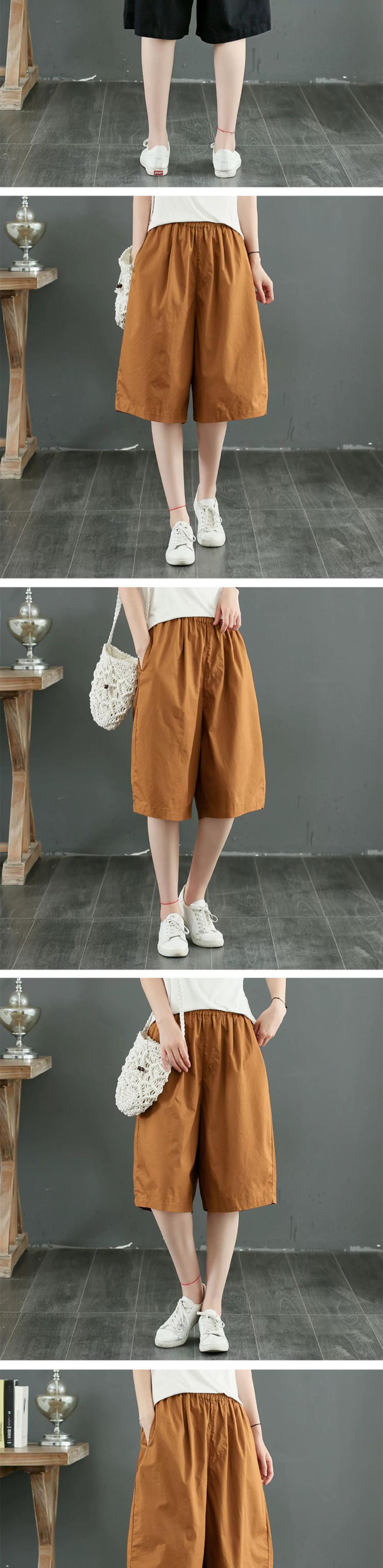 2021 夏無地ワイドレッグショーツ女性のゆったり大きいサイズウエストゴム 6 点パンツスタイル 5 点パンツ エラスティック 伸縮 大きめサイズ サマー 夏物 ブルマー ワイドパンツ ソリッドカラー sine51867272060