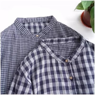ese スタイル森チェック柄ドレス女性の春と秋ルーズでスリムなレトロ文学長袖二層綿ガーゼカーディガンロングスカート コットン スプリング 春物 オータム 秋物 sine56076630385