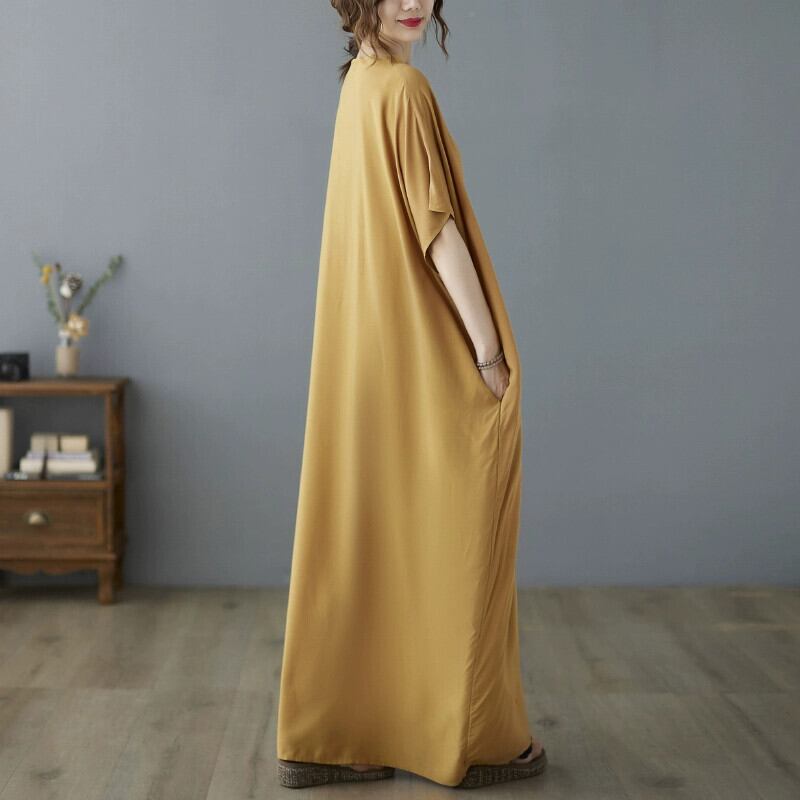 コットンドレスの女性の 2021 夏ルーズ特大ニット V ネック芸術的なローブファット mm 刺繍ロングスカート レッド サマー 夏物 Vネック sine37012119737