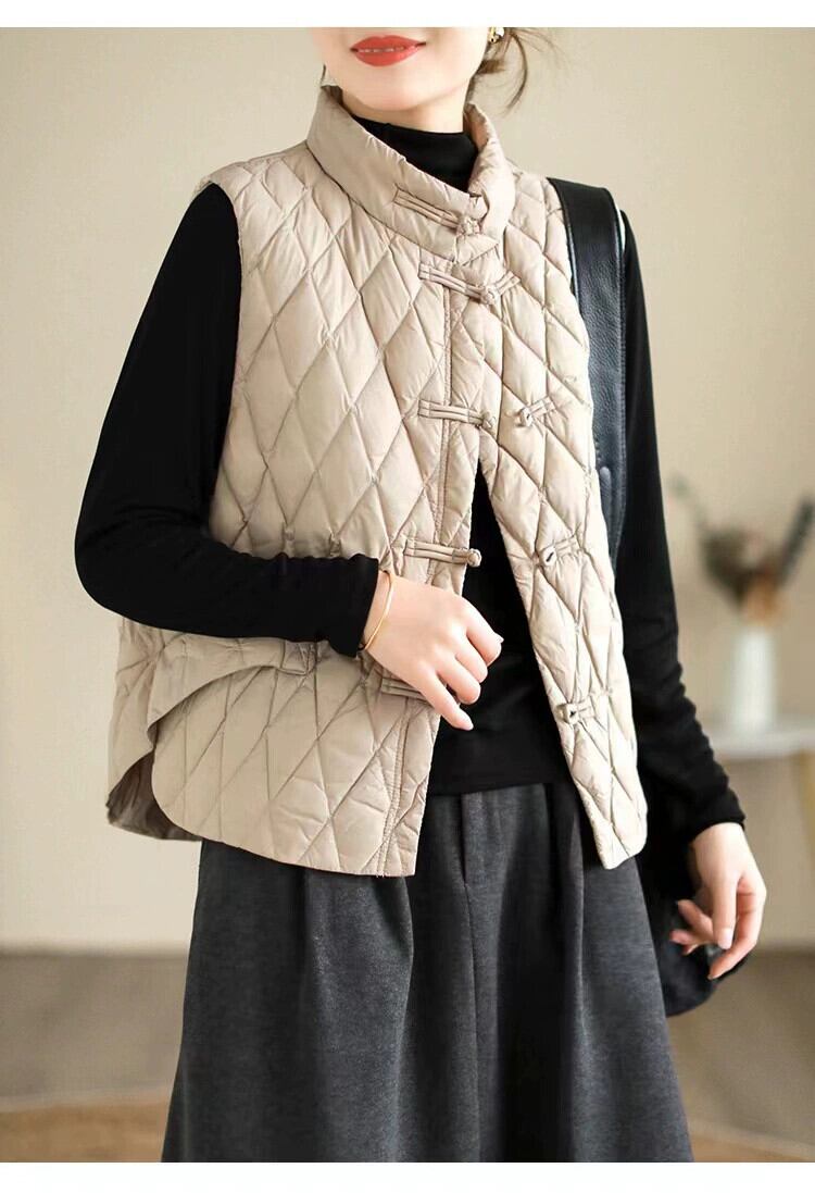 ese オリジナルシングル eign 貿易ブランドレトロキルティングディスクバックルベストジャケット女性のルーズノースリーブライトダウンジャケット冬 ウィンター 冬物 sine44540527628