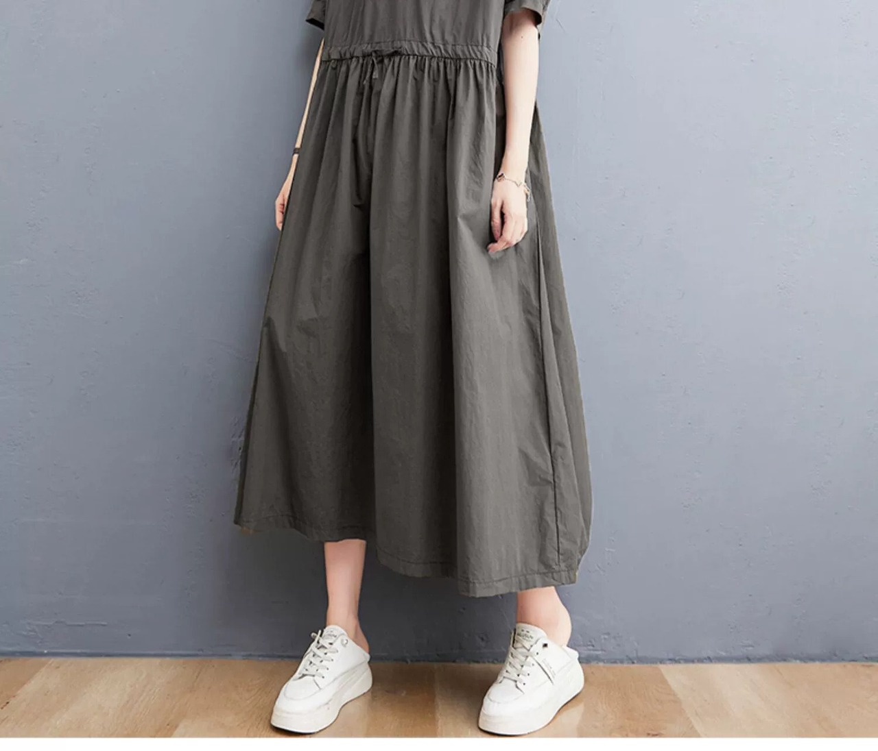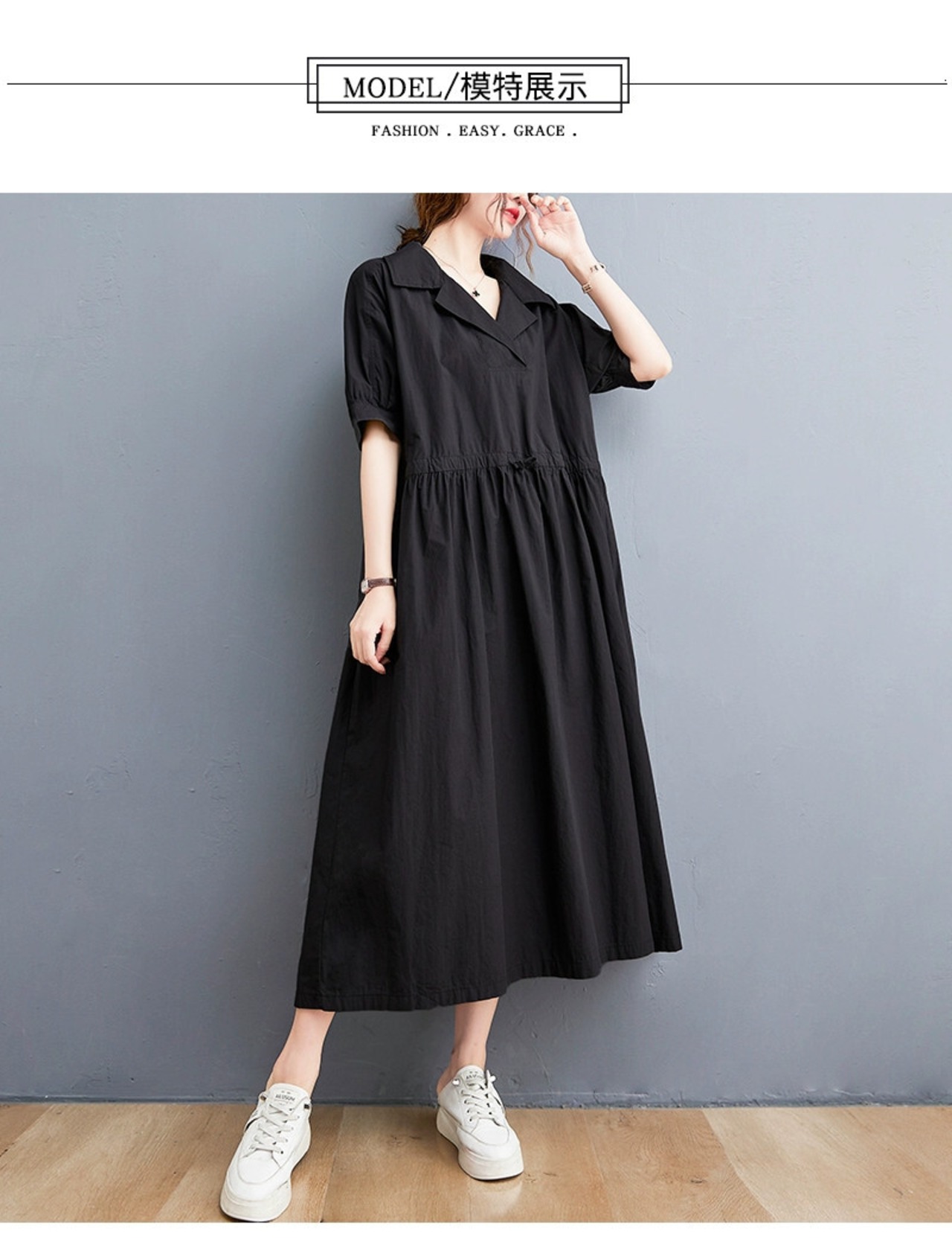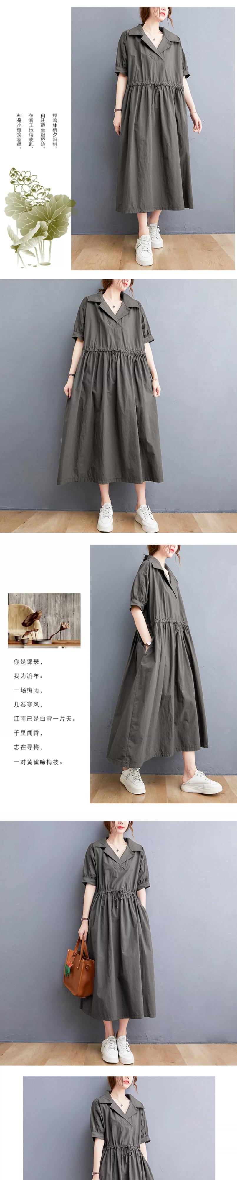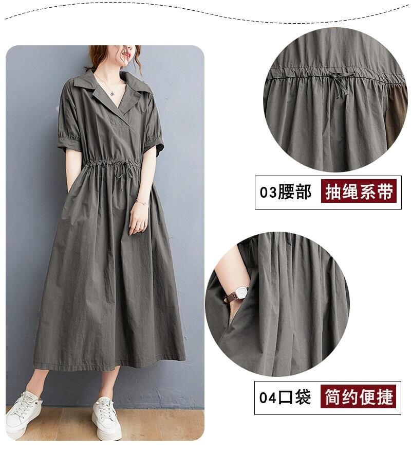 プラスサイズの女性の綿とリネンのドレス夏 2021 新しい緩い気質巾着ウエストスーツ襟フレンチミッドレングススカート コットン 大きめサイズ サマー 夏物 sine98688674703