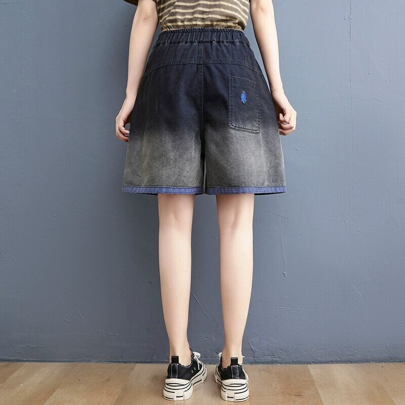 西洋スタイルのレトロなデニムショートパンツプラスサイズの女性のルーズ着用白コントラストカラースプライシングダメージ加工ワイドレッグクォーターパンツ 2021 夏 ホワイト 大きめサイズ サマー 夏物 ショーツ ブルマー ワイドパンツ sine37513080876