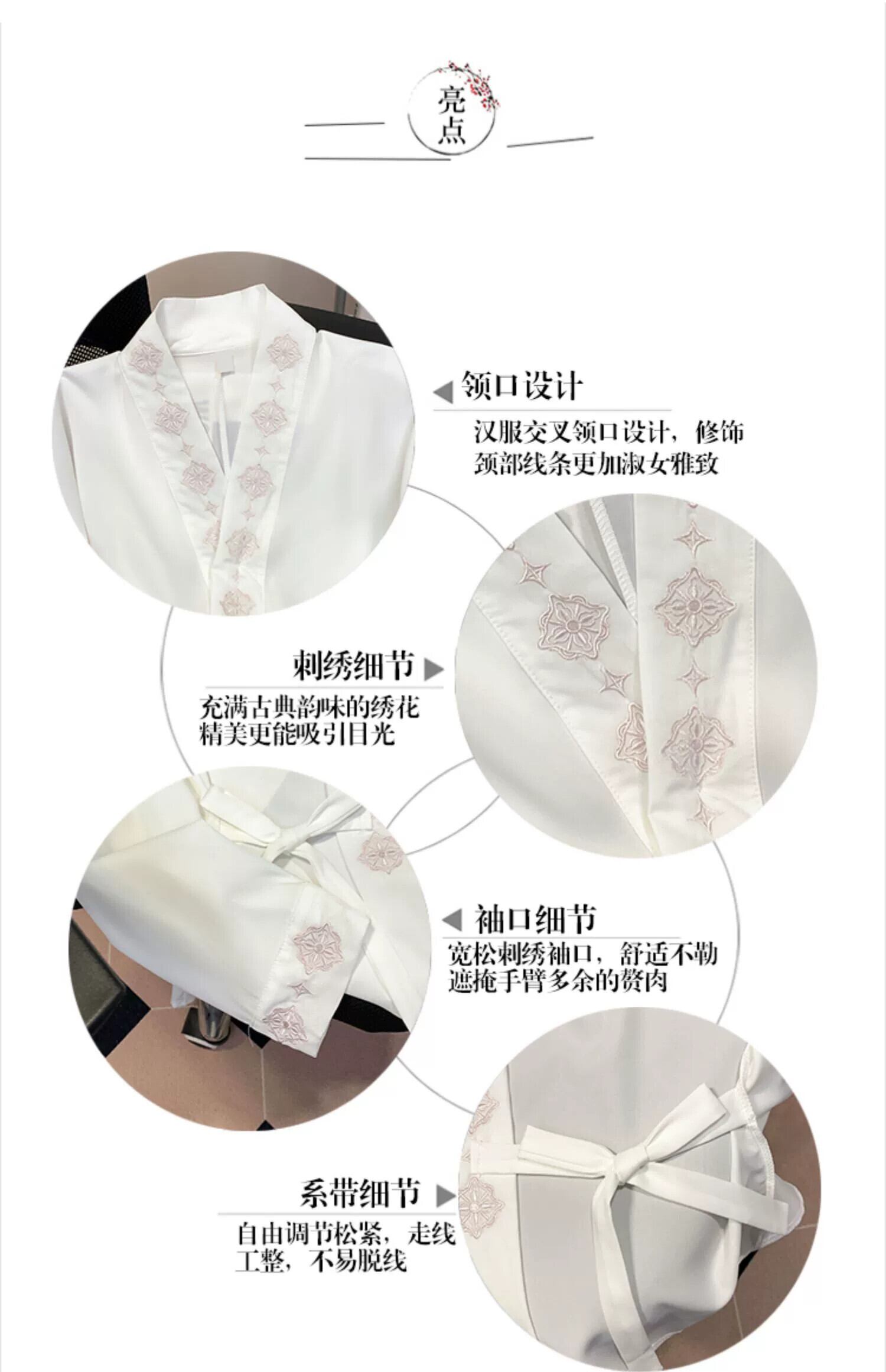 中国風 V ネック白刺繍シャツ ジャケット女性、春と秋のデザイン、民族風改善漢服長袖トップ ロング ホワイト レッド スプリング 春物 オータム 秋物 Vネック sine5153740298
