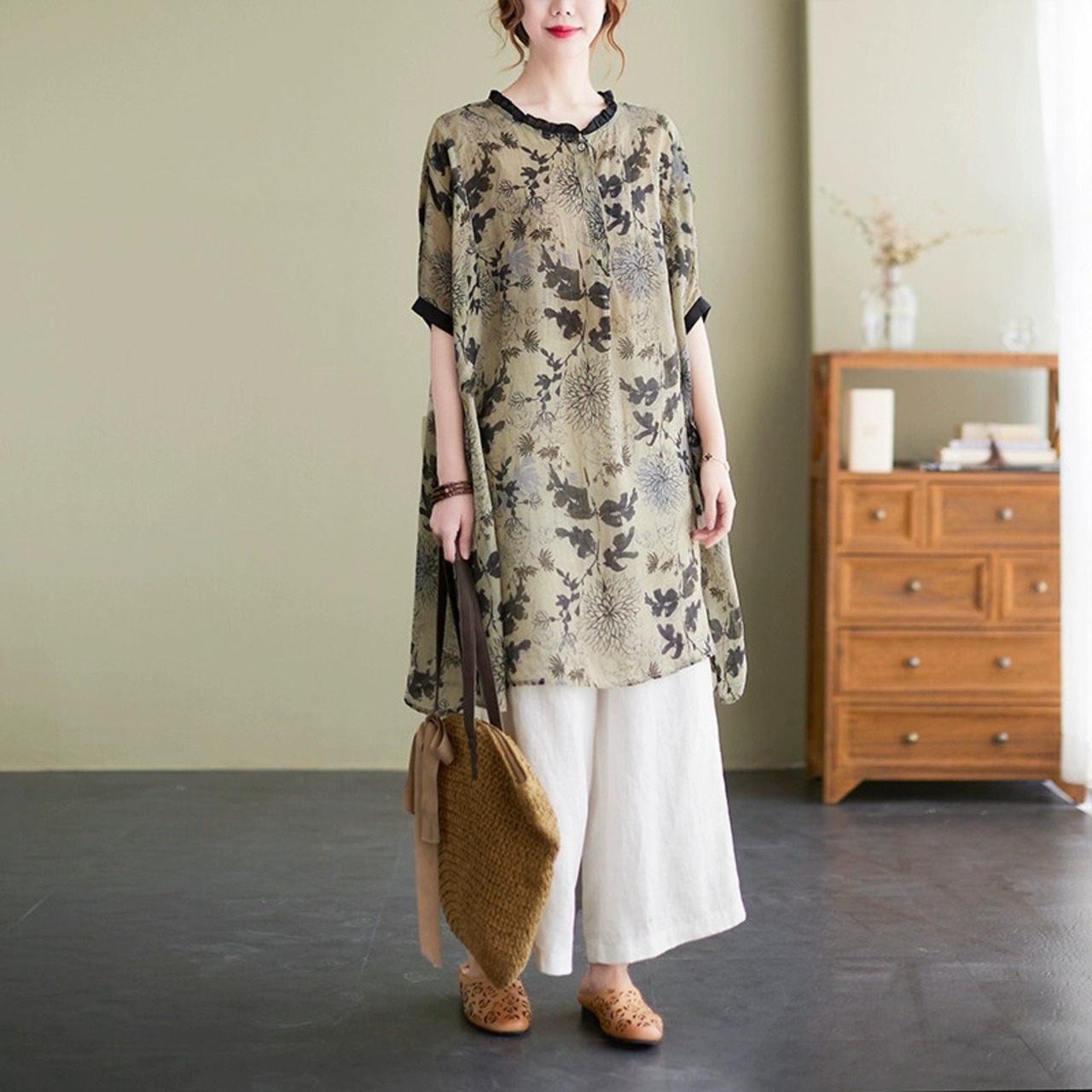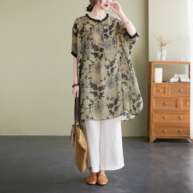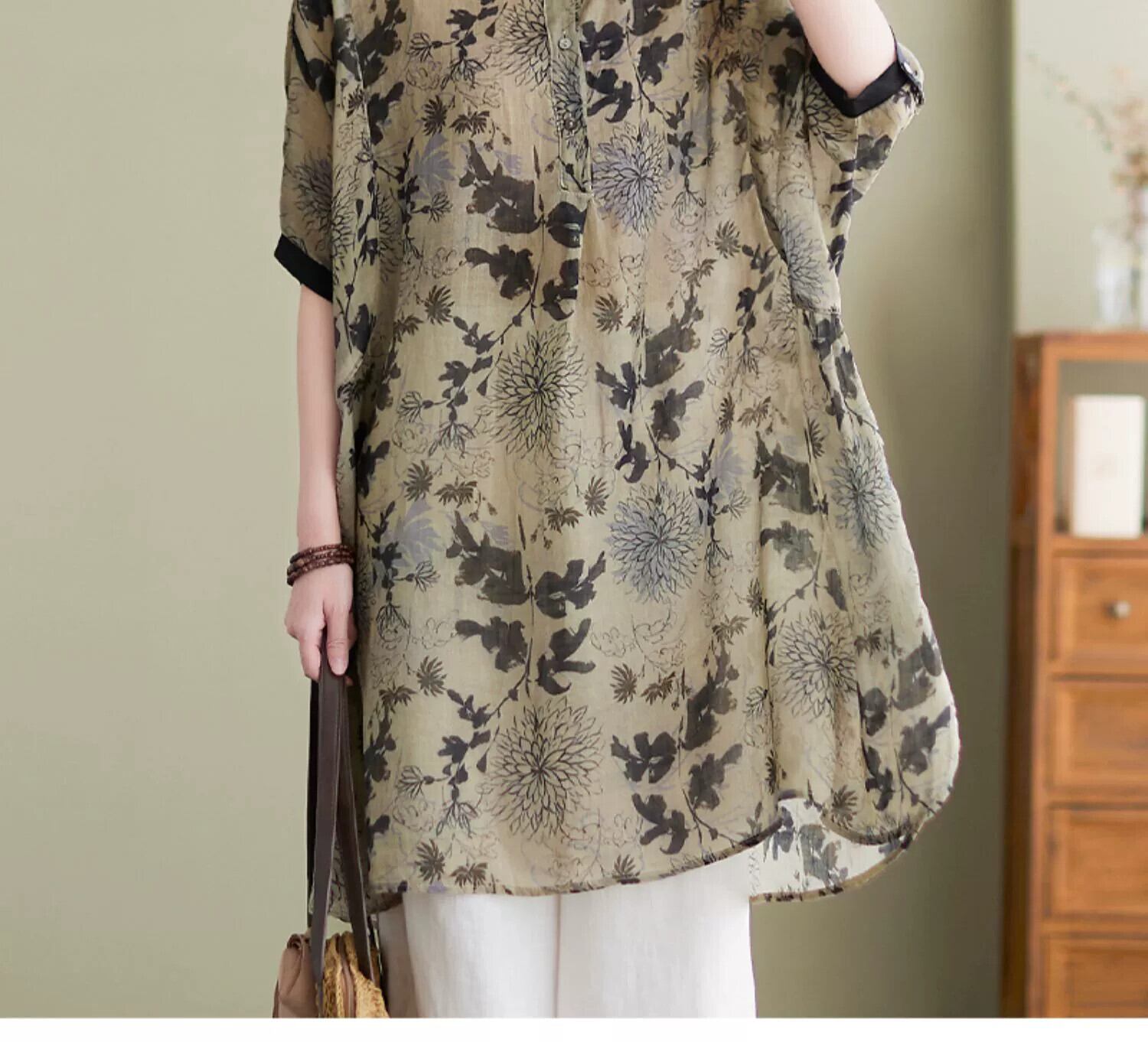 中国風のプリント綿とリネンのドレス夏ルーズプラスサイズの女性の西洋スタイル菌ミッドレングストップシャツスカート コットン 大きめサイズ サマー 夏物 sine60295571690