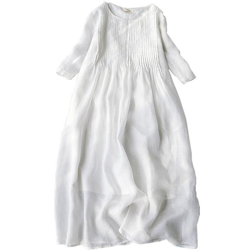 クリアランス漏れ〜フランスシングルブランドテールグッズカットラベルレディースエーゼアコーディオンプリーツラミーローブコットンリネンドレス sine13785317929