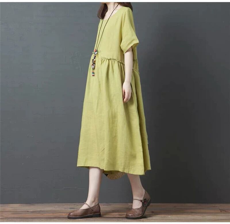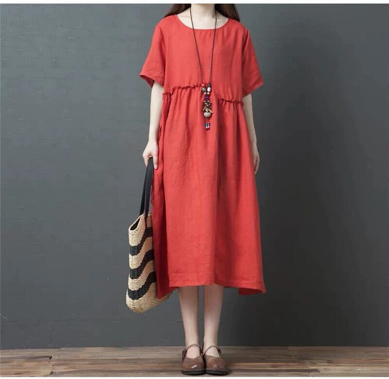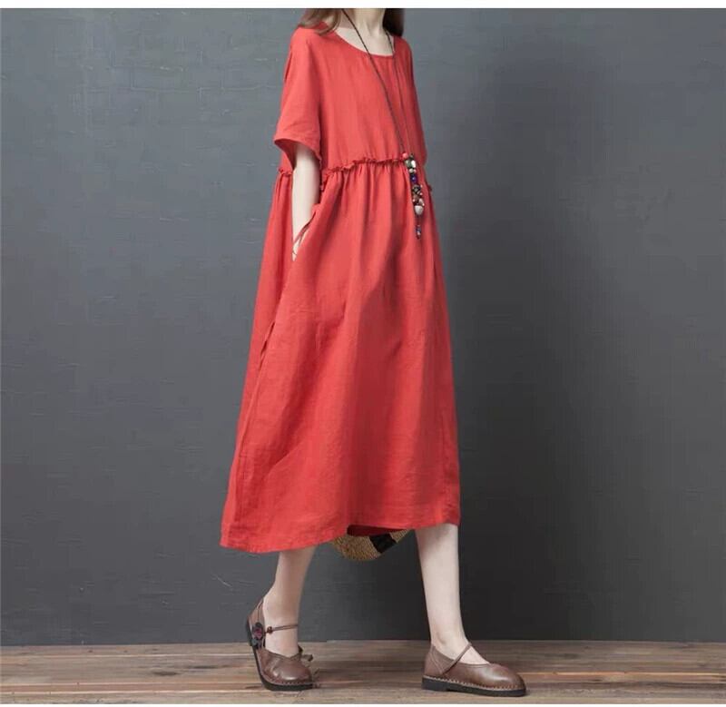 スタイルコットンとリネンのドレスの女性の夏 2022 新しい緩い大きいサイズ無地スプライシング腹カバー痩身リネンミッドレングススカート 大きめサイズ サマー 夏物 ソリッドカラー sine40479951693