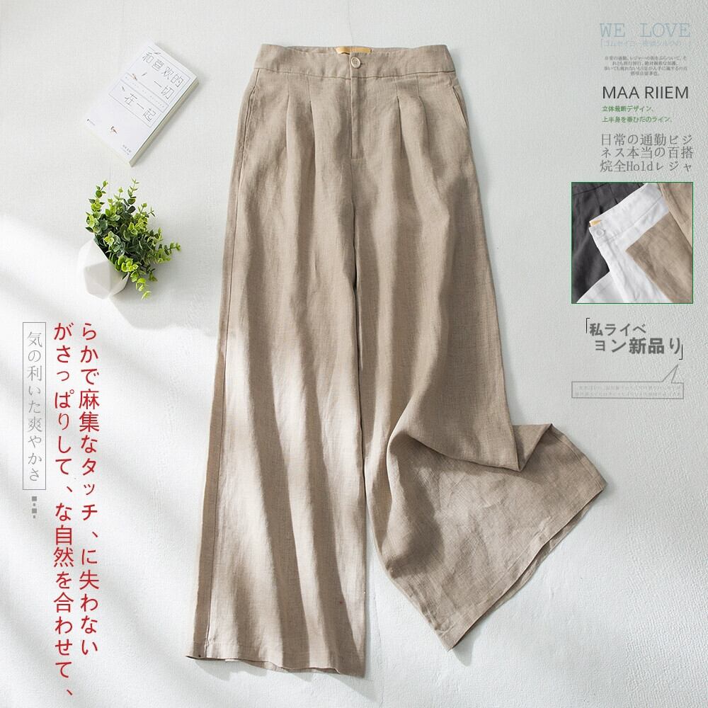 カットレーベルショッピングモール撤退女性の綿とリネンのワイドレッグパンツルーズ9ポイントハイウエストカジュアルストレートリネンパンツ コットン sine3123746657