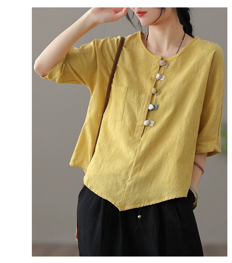 クリアランス漏れ~逆注文撤回ビッグブランドカットレーベルレディース中国風プレートボタンラミー薄手トップスコットンリネン半袖シャツ sine16281040990