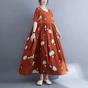 文学プラスサイズの女性の 2022 夏スタイルルーズファットシスターレトロカラー休暇ローブ半袖ドレス ショート ハーフスリーブ 大きめサイズ サマー 夏物 sine80015649959
