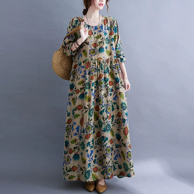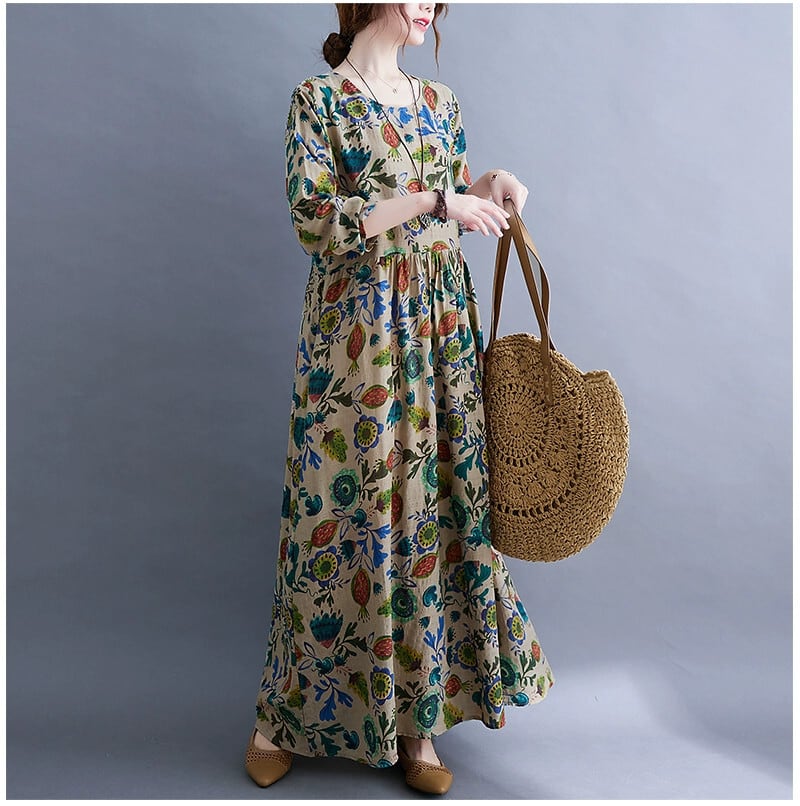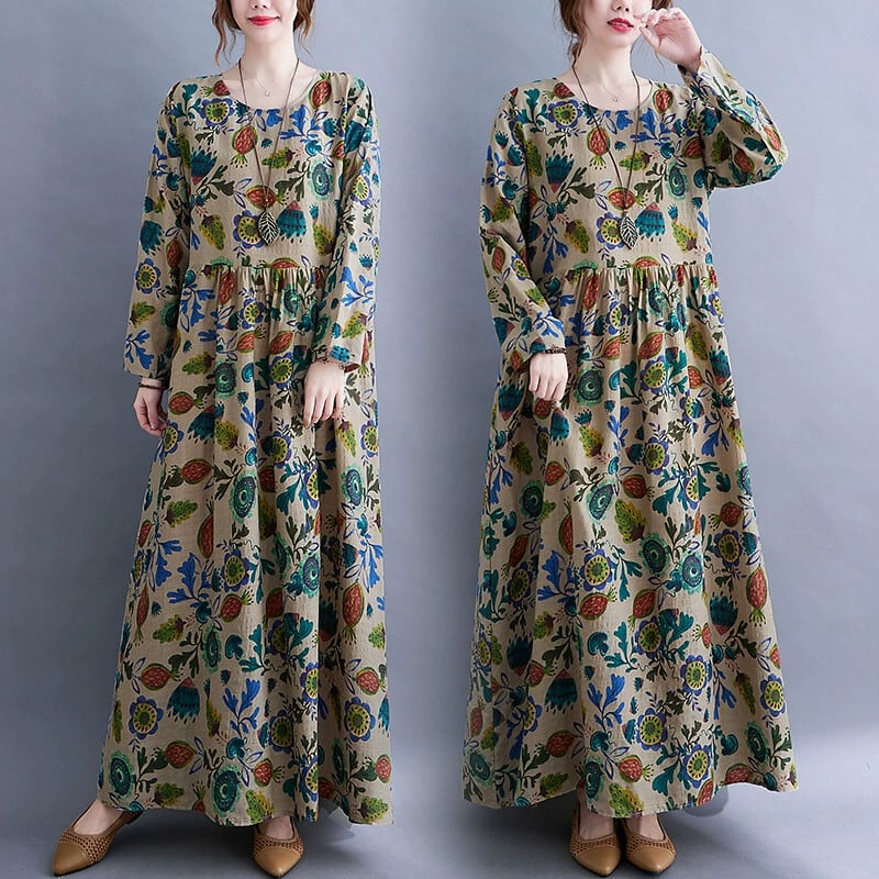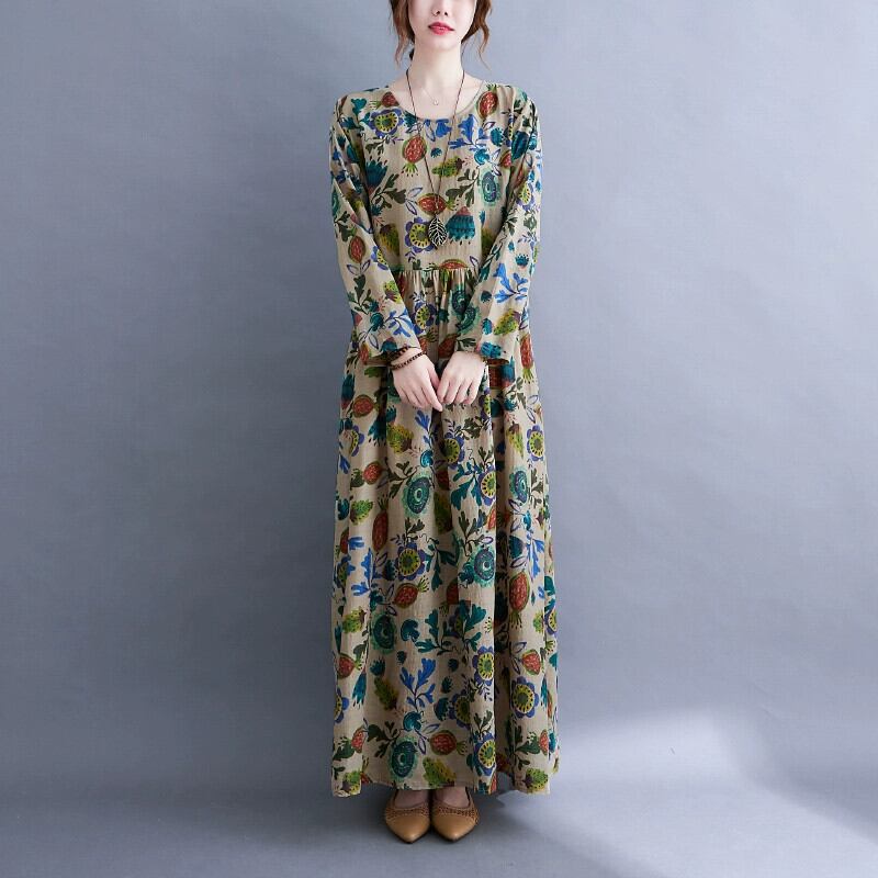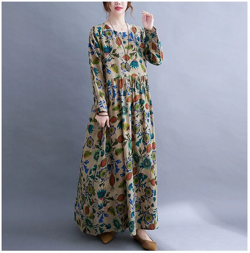 エスニックスタイルのプラスサイズの女性のドレス春と秋、お腹の脂肪をカバーする緩くてスリミングmmレトロプリントロングローブ 大きめサイズ スプリング 春物 オータム 秋物 sine40616978149