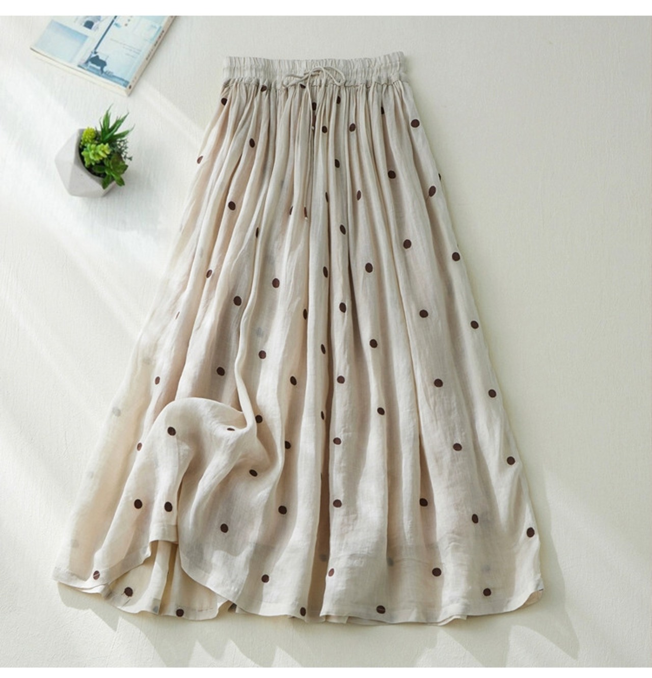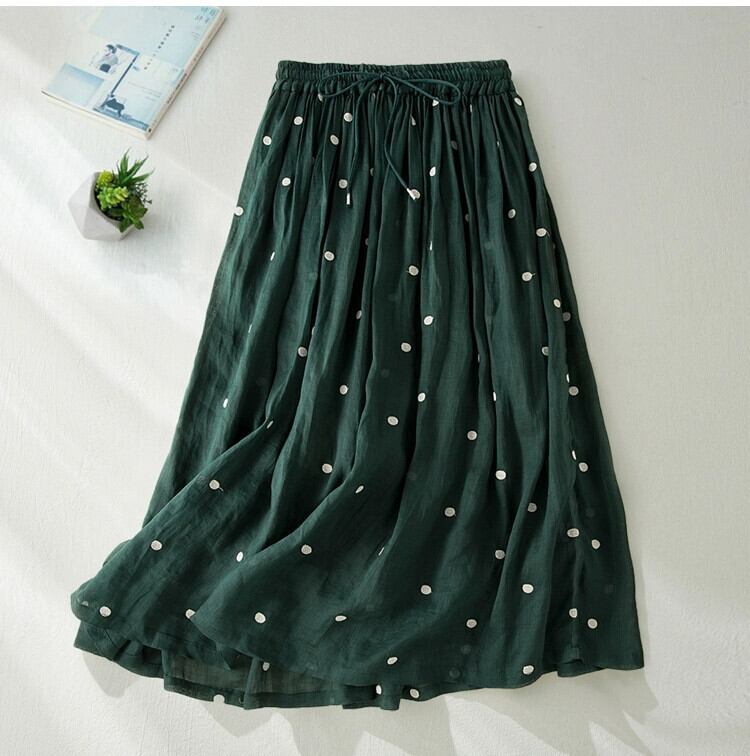カットラベルショッピングモール除去エーゼスタイル二重層ラミーAラインスカートハイウエスト大きな裾コットンリネン水玉スカート ハイウェスト sine79913269470