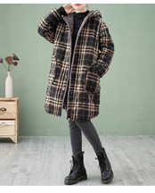 イタリアブランド eign trade 輸出ラストオーダークリアランスレディースミッドレングスプラスベルベットと厚みのあるチェック柄のフード付きジャケットとコットンコート sine29742732137