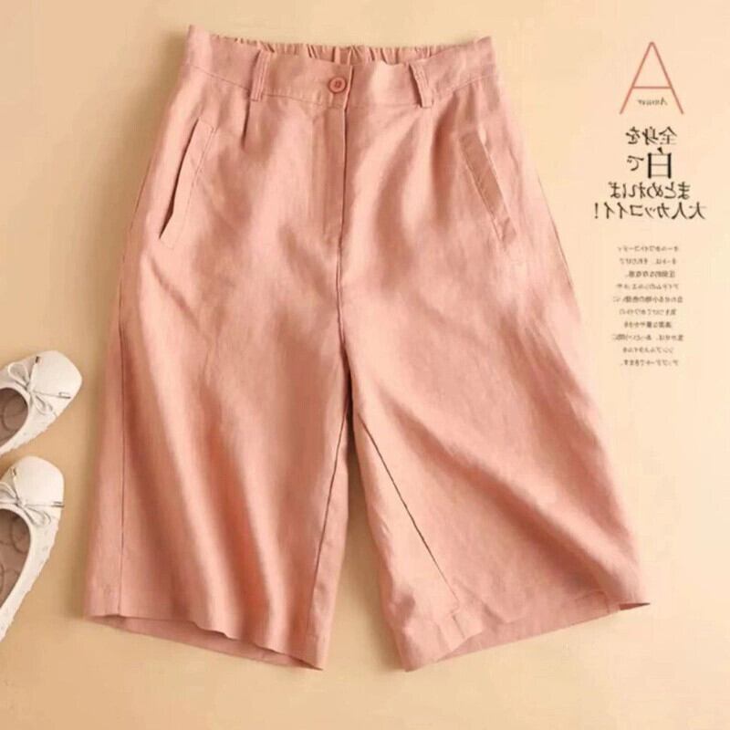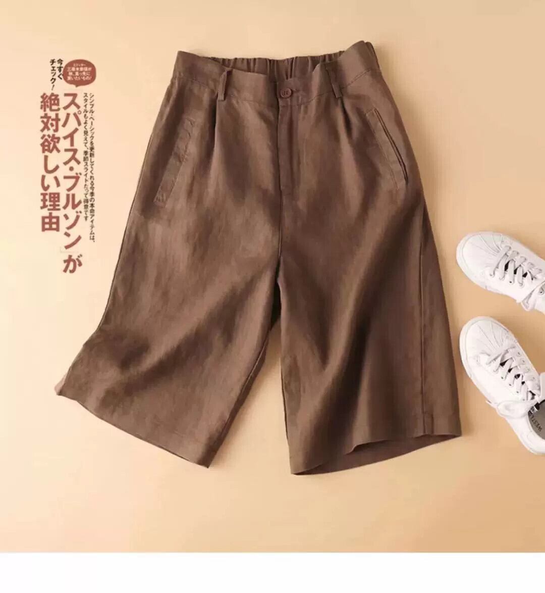 クリアランス漏れ〜カウンタービッグネームeign tradeレディースカットハイウエストストレート5ポイントミディアムパンツカジュアルコットンリネンワイドレッグショーツ ブルマー sine49706870542