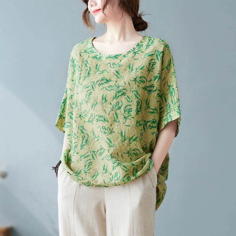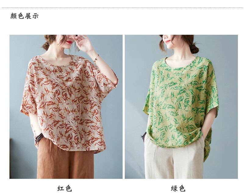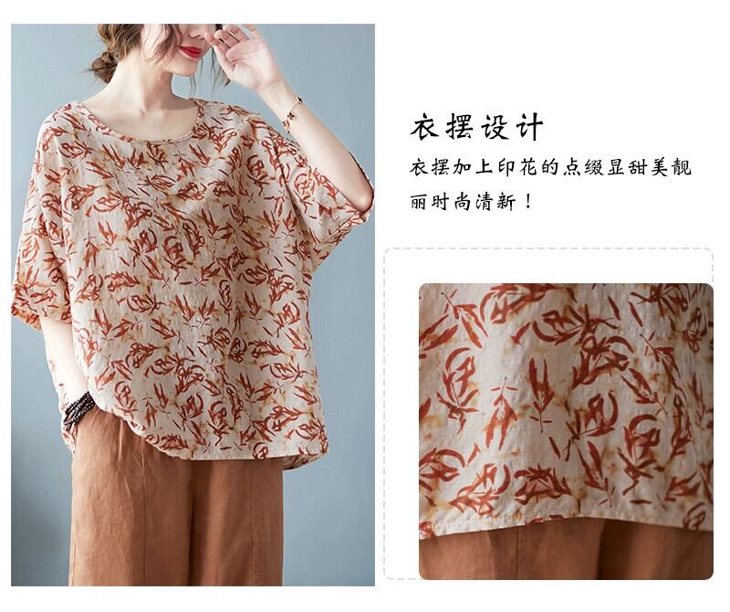 200 ポンドのプラスサイズの女性の夏ルーズフィット脂肪のファッショナブルなレトロなプリントの薄いシャツ トップ コットンとリネンの半袖 T シャツ 大きめサイズ サマー 夏物 Tシャツ sine99390807059