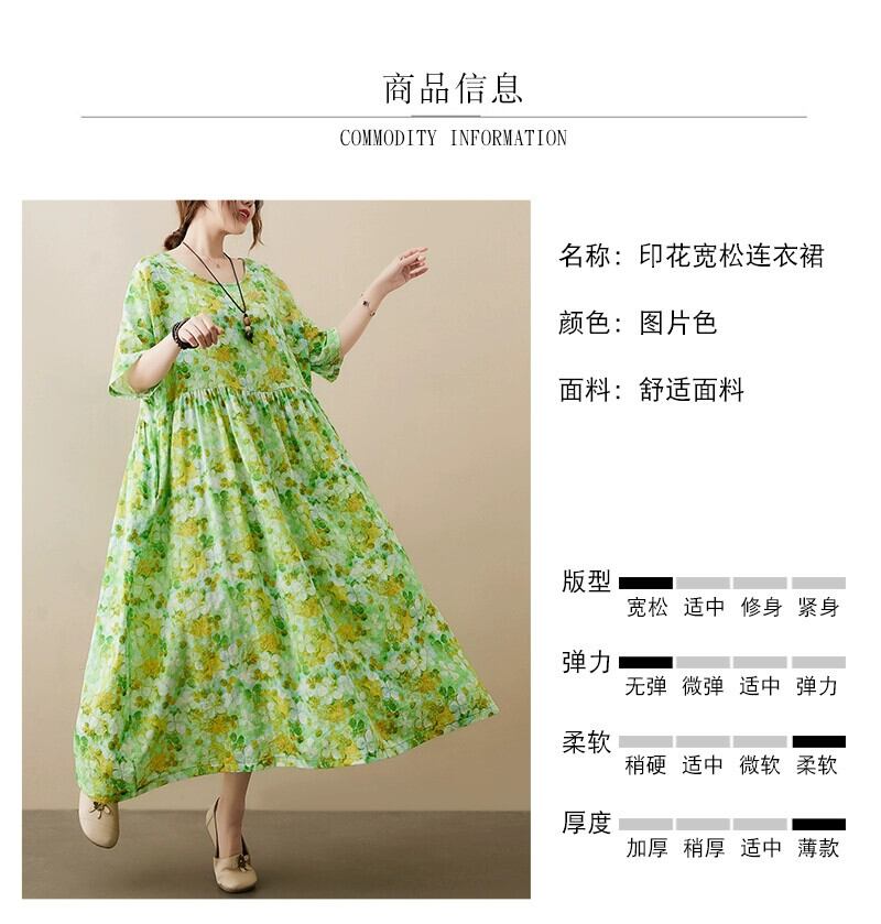 コットンとリネンのドレスの女性、サマースタイル、ルーズ、大きいサイズ、太い、レトロな花柄、エレガント、大きな裾、リネンローブ 大きめサイズ 夏物 sine52793139980