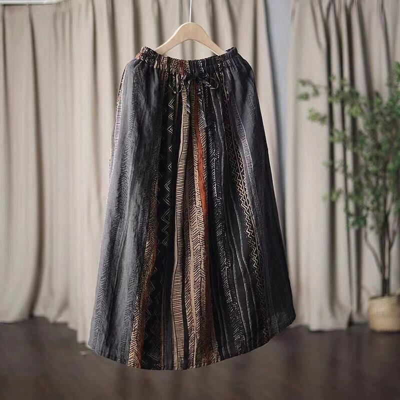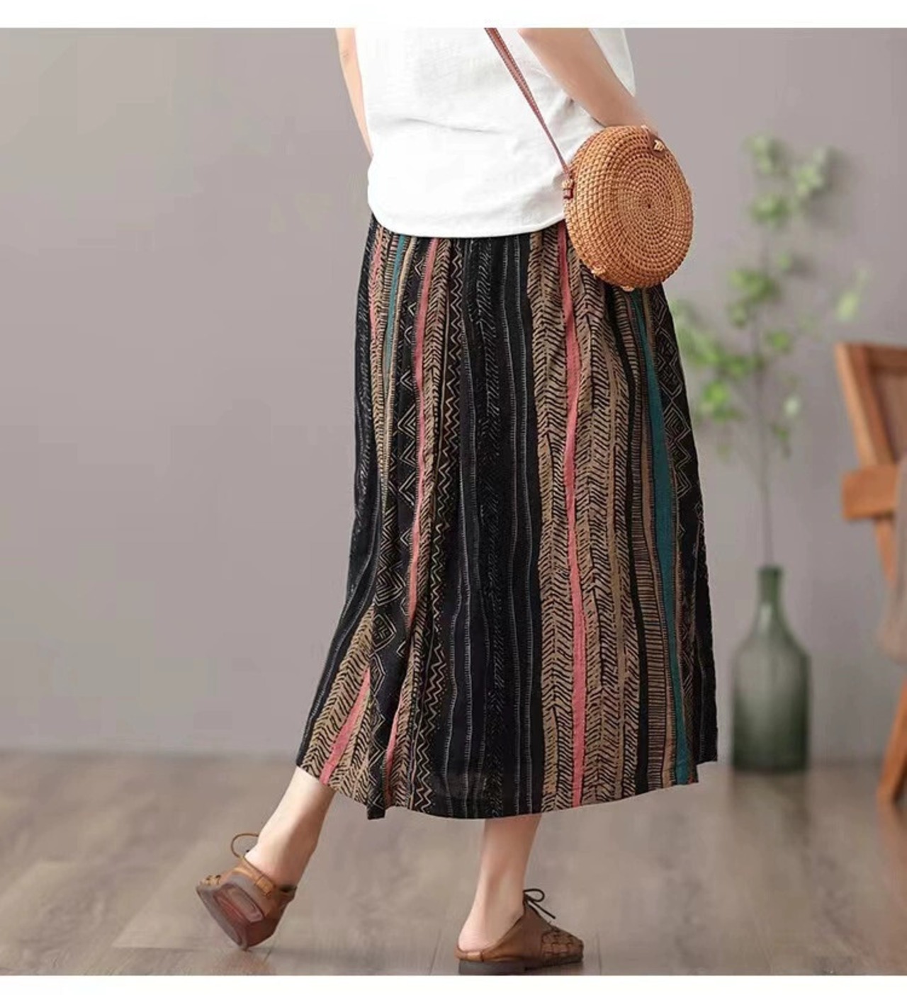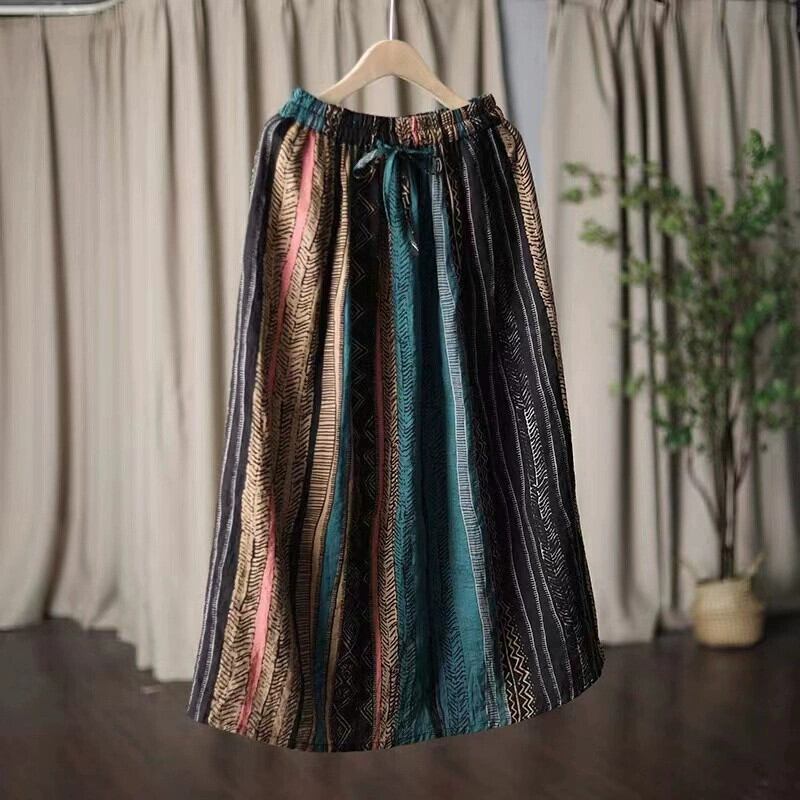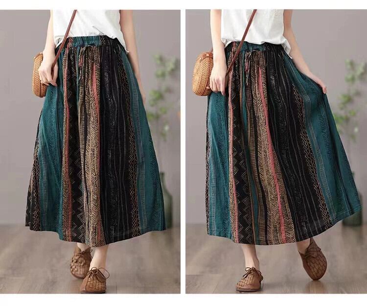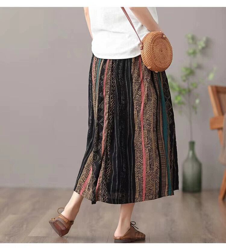 ショッピング モールから拾い上げ、キャビネットから取り出し、カットしてラベルを貼り付けた孤立したアイテム。女性用のレトロなストライプのラミー スカート、ハイウエスト コットン、リネン、リネンの A ライン ロング スカート Aライン sine97910686065