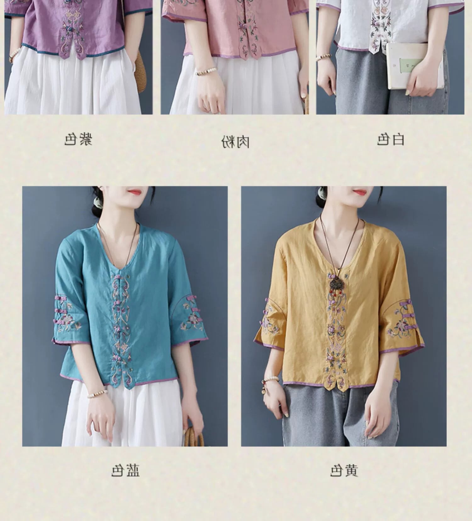 eign trade イタリア輸出ラストオーダーカットラベル レディース クリアランス ディスクボタン Vネック リネン 5分袖シャツ 綿麻 Tシャツ トップス コットン sine26321602398
