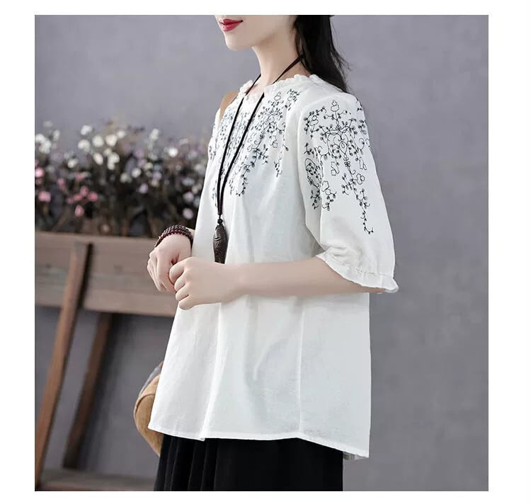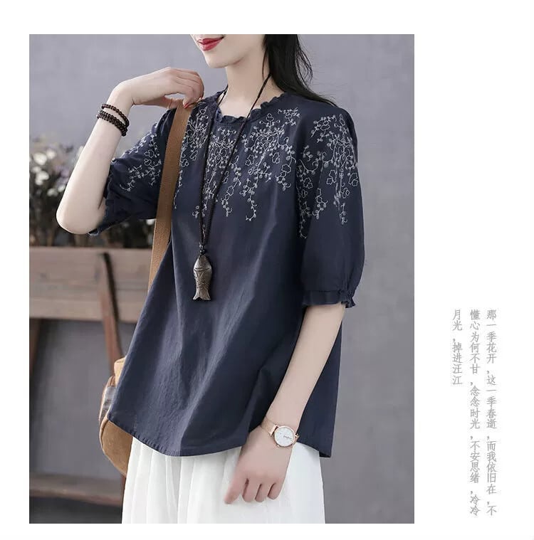 クリアランス漏れ〜ディスカウントストアブランドカウンター撤退レディースレトロフローラルラミートップコットンとリネンランタン半袖Tシャツ 花柄 sine52554993270