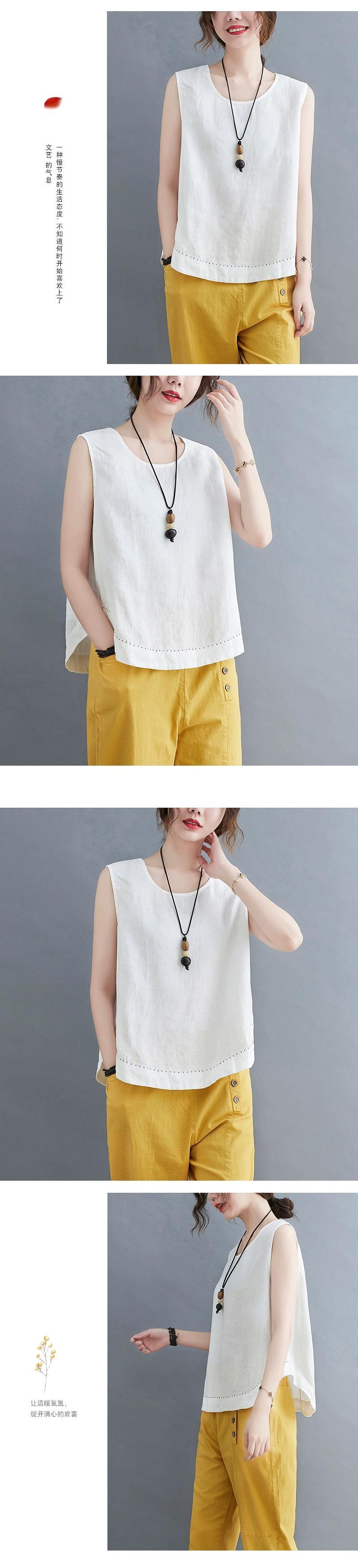 コットンとリネンサスペンダー Tシャツ女性 2021 夏ルース大きいサイズ芸術的な無地インナーとアウターウェア薄いリネンベストトップ 大きめサイズ サマー 夏物 ソリッドカラー sine35858131330