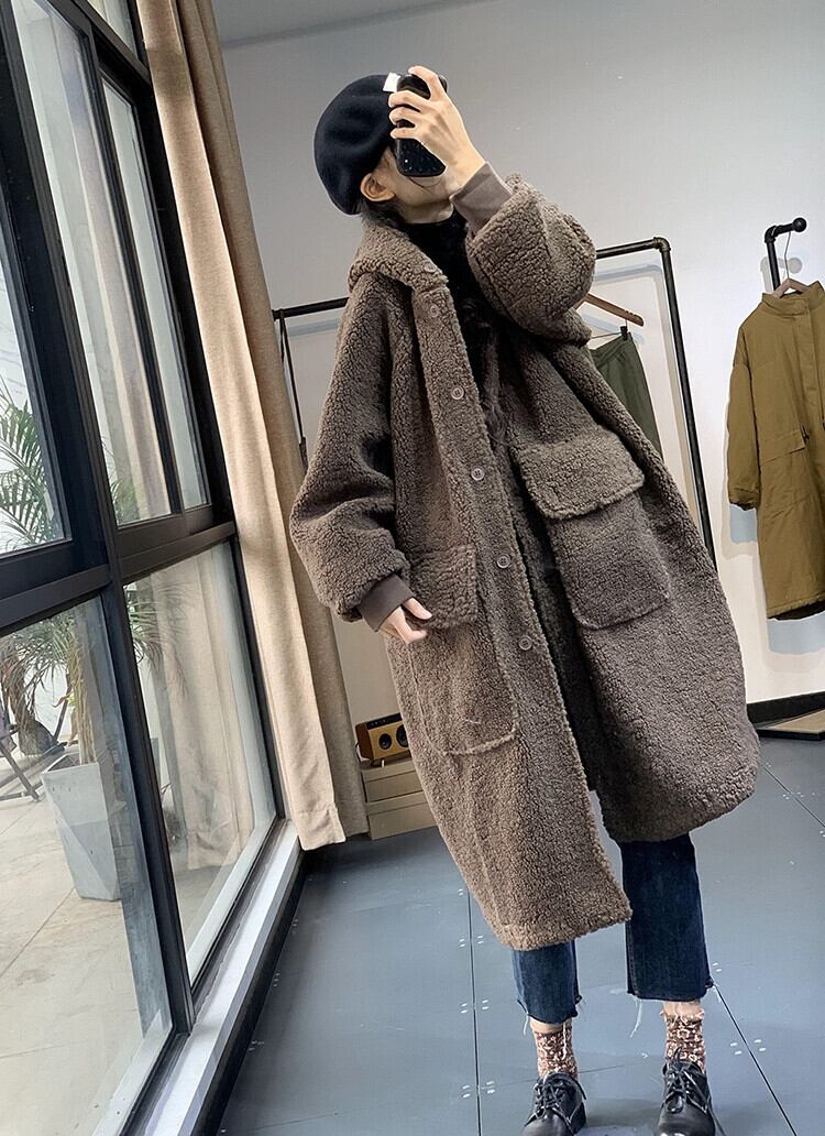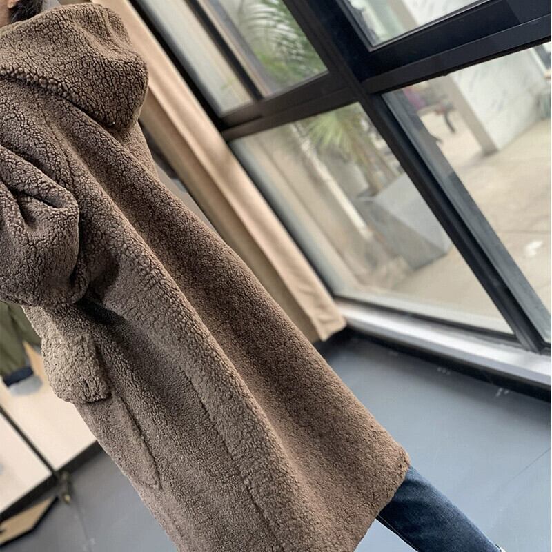 毛皮ワンピースフード付きコート女性冬ルーズ大きいサイズミッドレングスポケットレトロ肥厚暖かいラムウールコート 大きめサイズ ウィンター 冬物 sine11182800465