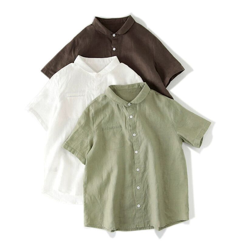 カットラベルショッピングモールクリアランスエサラミー半袖レディースシャツルーズドールカラーコットンリネントップ sine23824272859