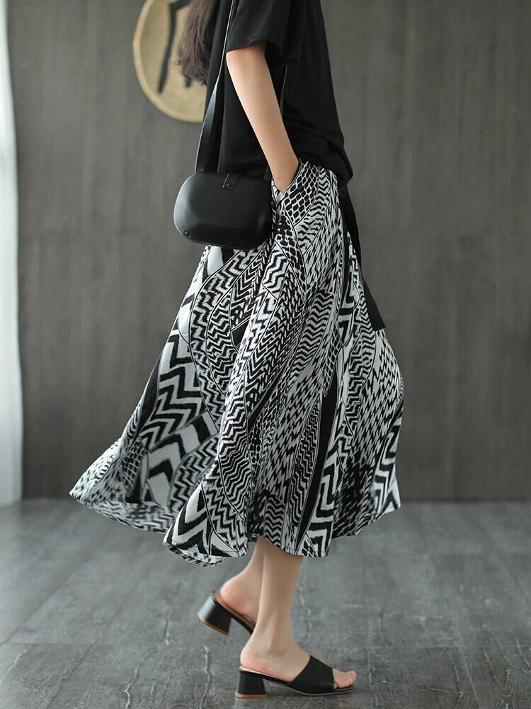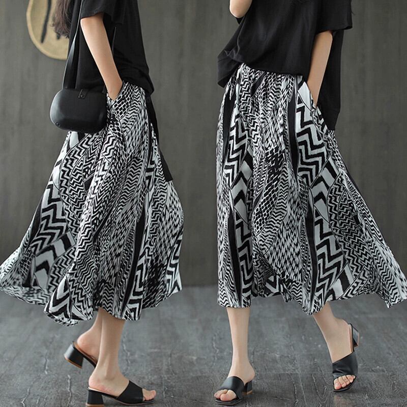 スカート女性 2021 秋と夏の新スタイルファットミリメートルルーズ大きいサイズレトロ文学プリントミッドレングス a ラインスカート 大きめサイズ サマー 夏物 オータム 秋物 Aライン sine34655540148