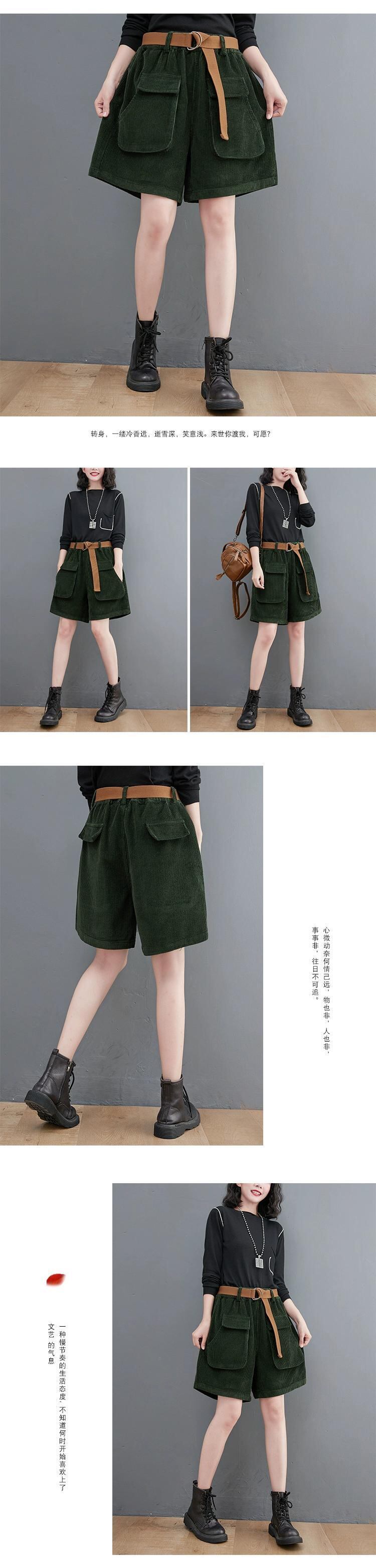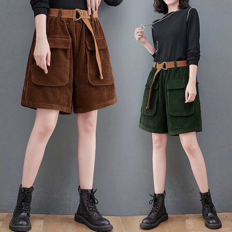コーデュロイショーツ女性秋 2021 冬ルーズ大サイズレトロ大ポケットコーデュロイ底カジュアルワイドレッグブーツパンツ 大きめサイズ オータム 秋物 ウィンター 冬物 ブルマー ワイドパンツ sine56983783088