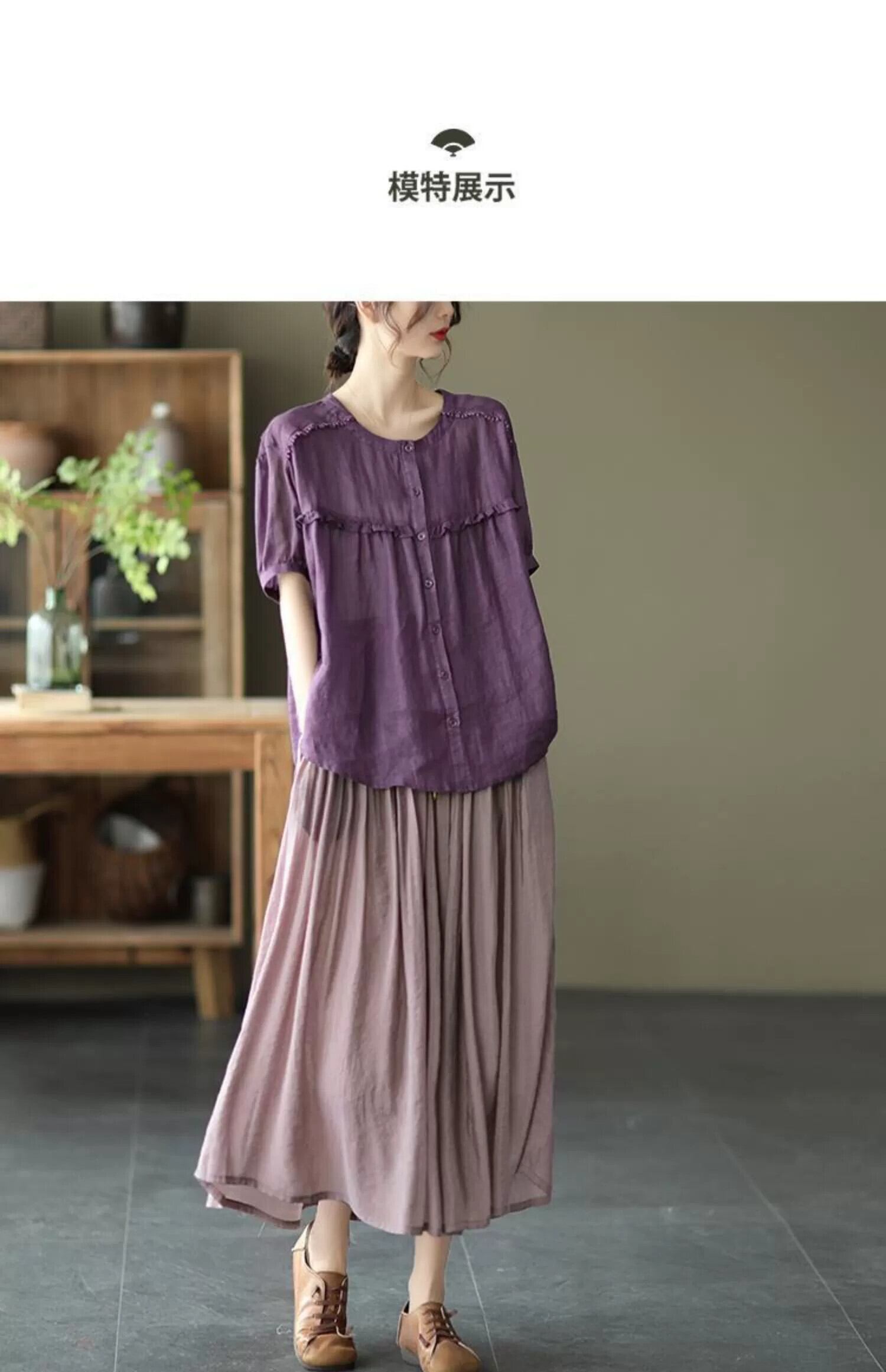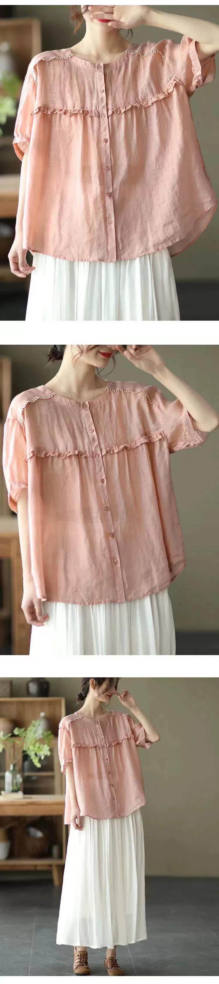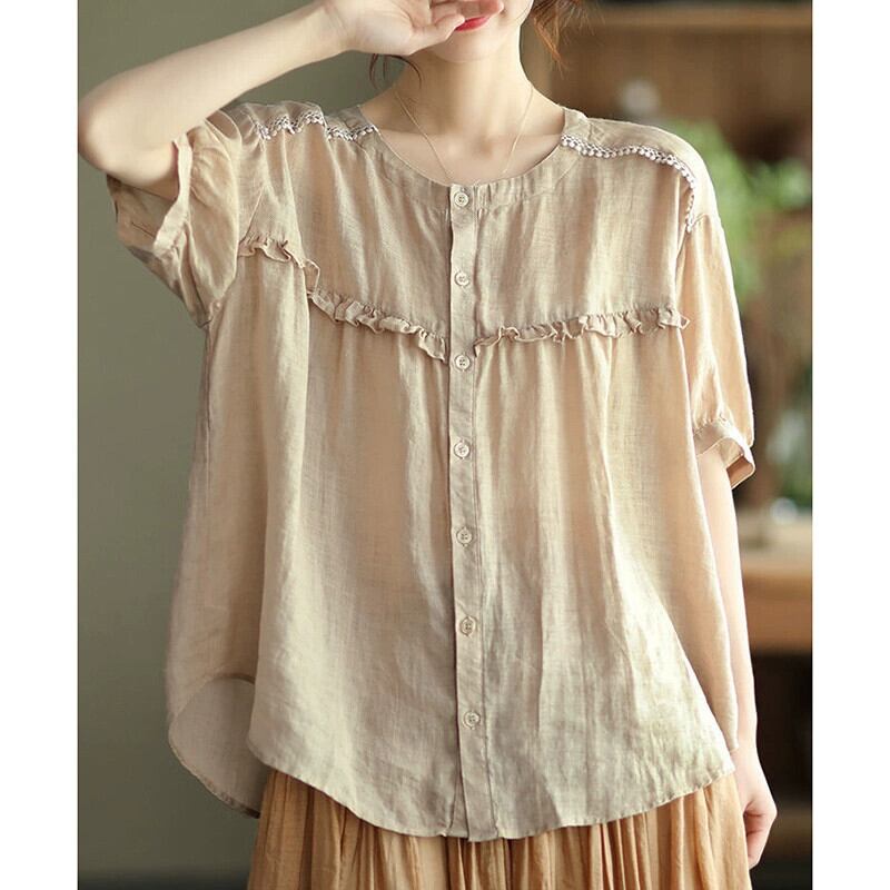 ese and eign trade オリジナル シングルテールグッズ レディースモール 店頭撤去 ラミー 薄手トップ エイジリダクション ドールシャツ 綿麻半袖シャツ コットン sine42044449124