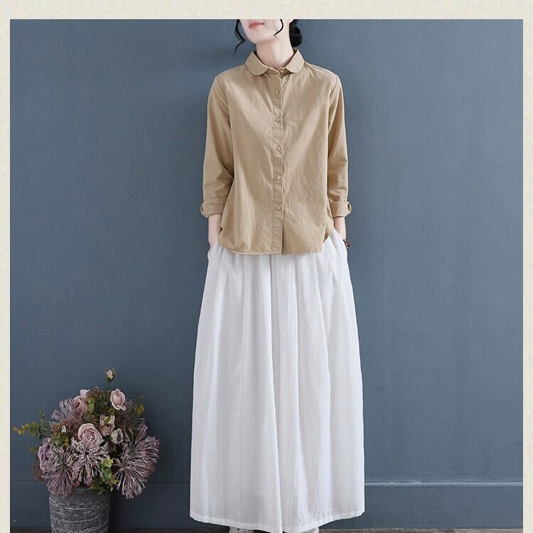 eign tradeとSouthオリジナルのシングルテールカーゴカットマーククリアランスクリアランスルーズラペル二重綿糸トップ長袖レディースシャツ ロング コットン sine58955624825