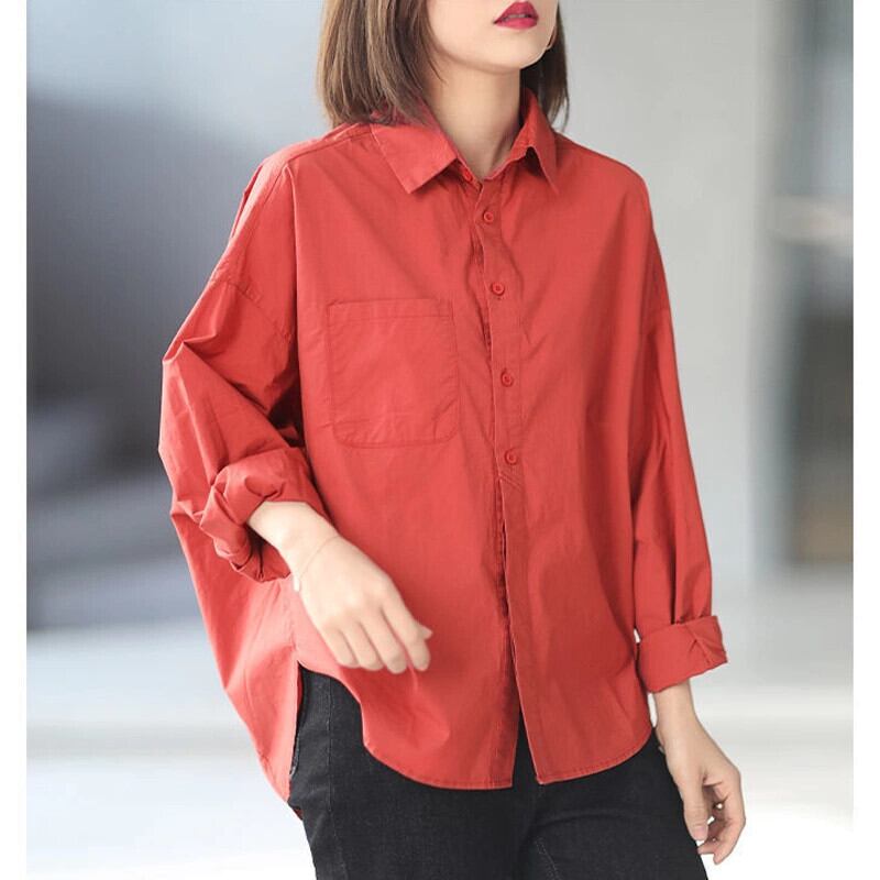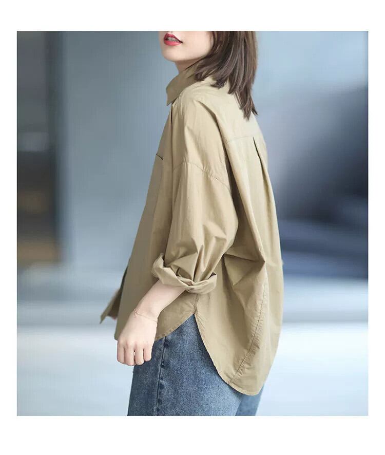 長袖シャツジャケット女性 2021 秋冬ゆったり大きいサイズの女性の脂肪 mm レトロ文学無地不規則なトップ ロング 大きめサイズ オータム 秋物 ウィンター 冬物 ソリッドカラー sine92067873334
