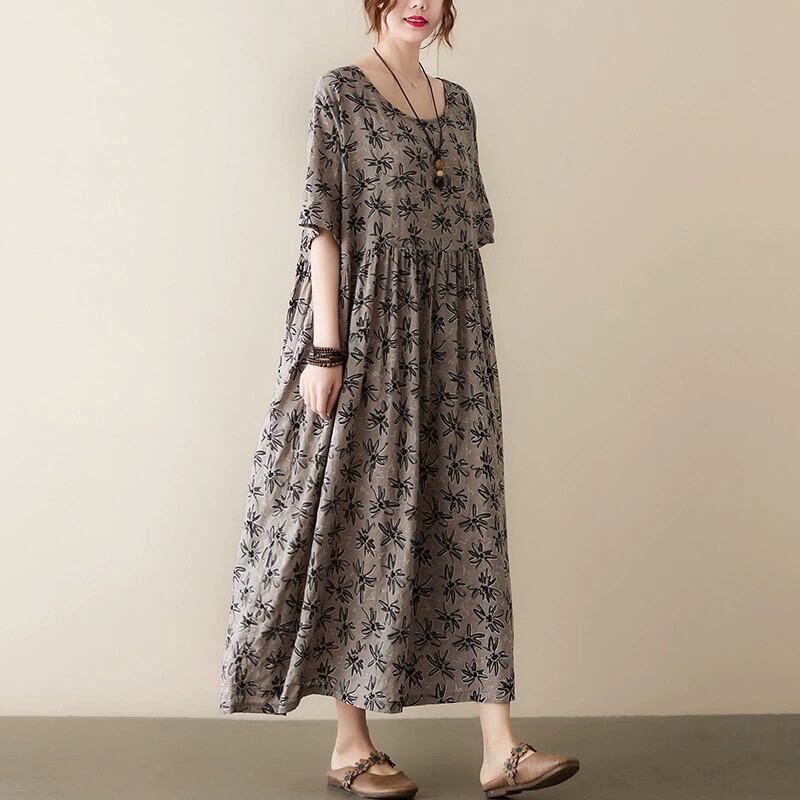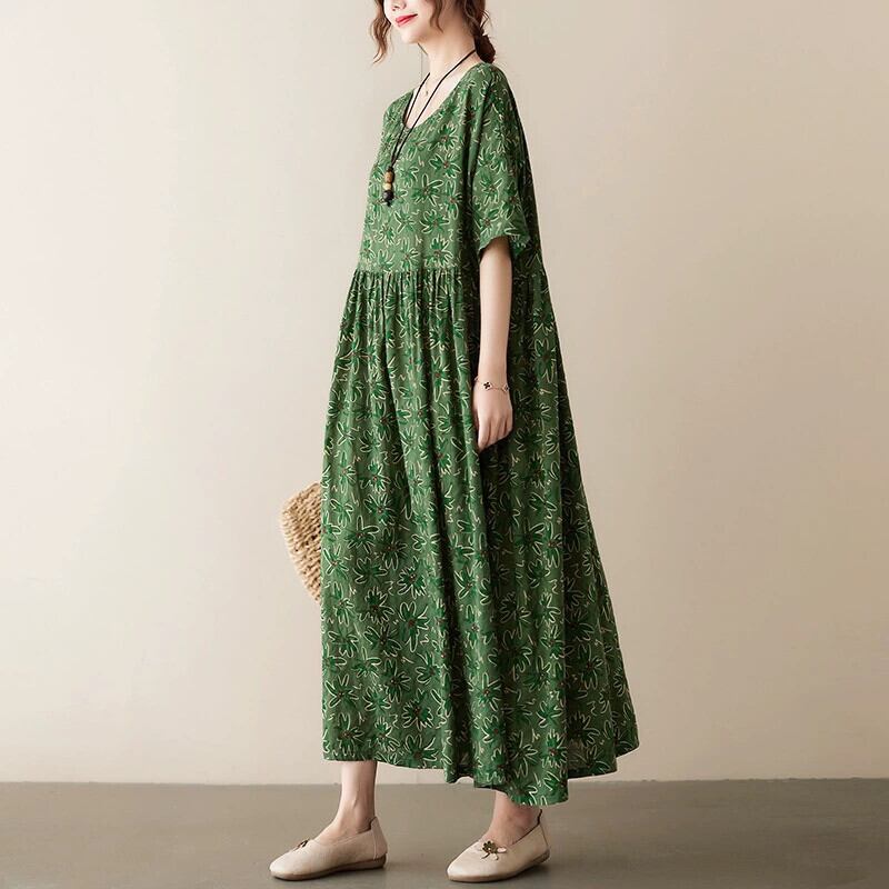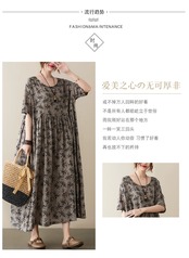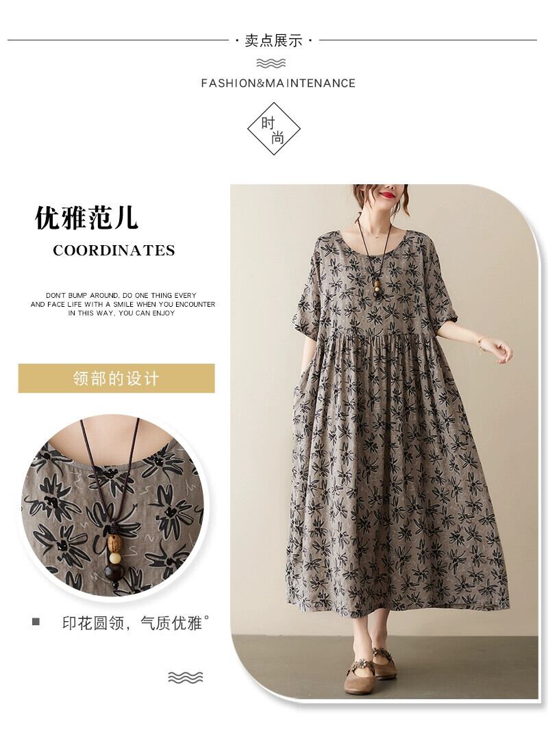 プラスサイズプラスサイズの綿とリネンのドレス夏ルースファットシスターレトロ花柄comtable通気性のあるリネンローブ コットン 大きめサイズ サマー 夏物 sine53769336351