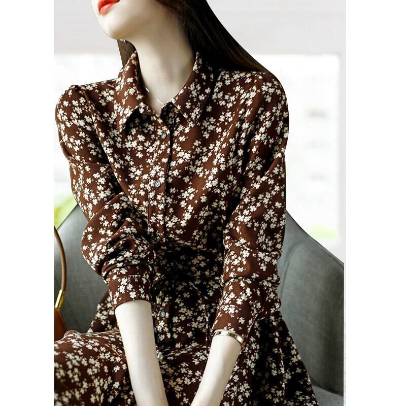 イタリアンテールグッズ カットレーベル eign Trade Clearance オリジナル シングル レディース 長袖 ラミー ワンピース 花柄 コットンリネン シャツ ロングスカート sine21357472667