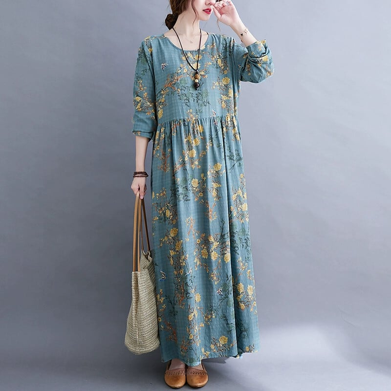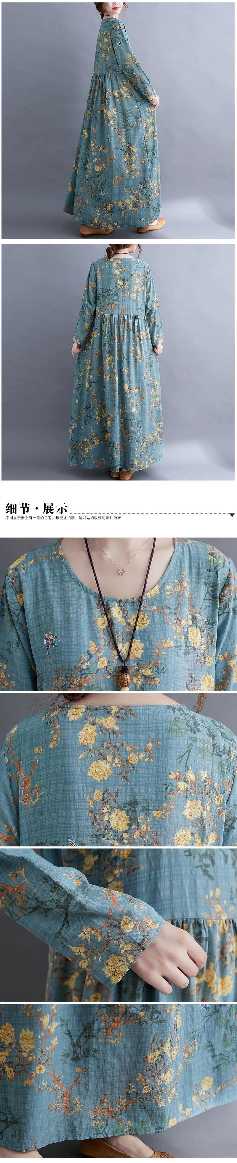 エスニックスタイルプリントドレス女性 2021 春と秋緩い大きいサイズ芸術的なプリント西洋スタイル年齢を減らす隠し肉ミドル丈スカート 大きめサイズ スプリング 春物 オータム 秋物 sine90876300223