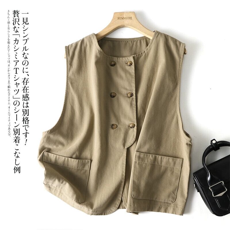 カットラベルショッピングモール撤退女性のルーズルーズチョッキベストトップレトロeseダブルブレストベストジャケット sine87236000399