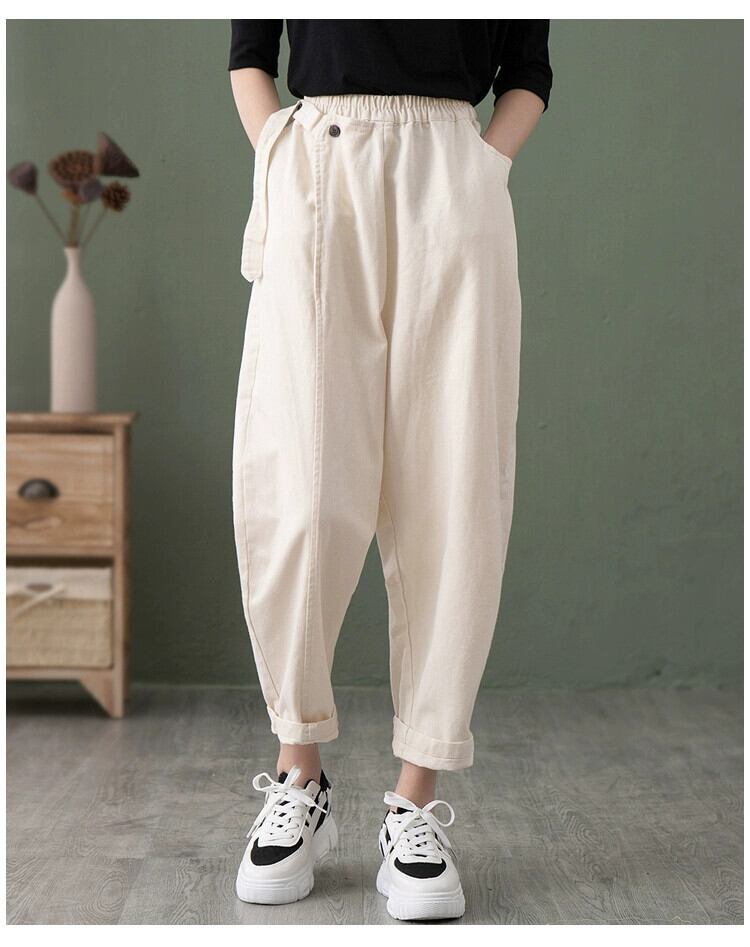 クリアランス漏れ ~ ese と eign 貿易輸出シングル女性のカットラベルレトロ弾性ウエストカジュアル小足お父さんハーレムパンツ エラスティック 伸縮 sine95202515808