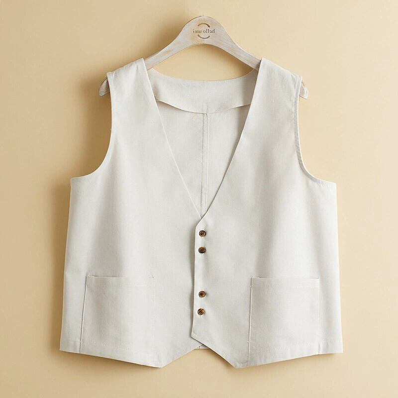 クリアランス漏れ ~ カウンターは eign trade カットラベルを撤回しました レディース レトロ コットンとリネン ベスト ベスト カジュアル V ネック リネン カーディガン Vネック sine3297434724