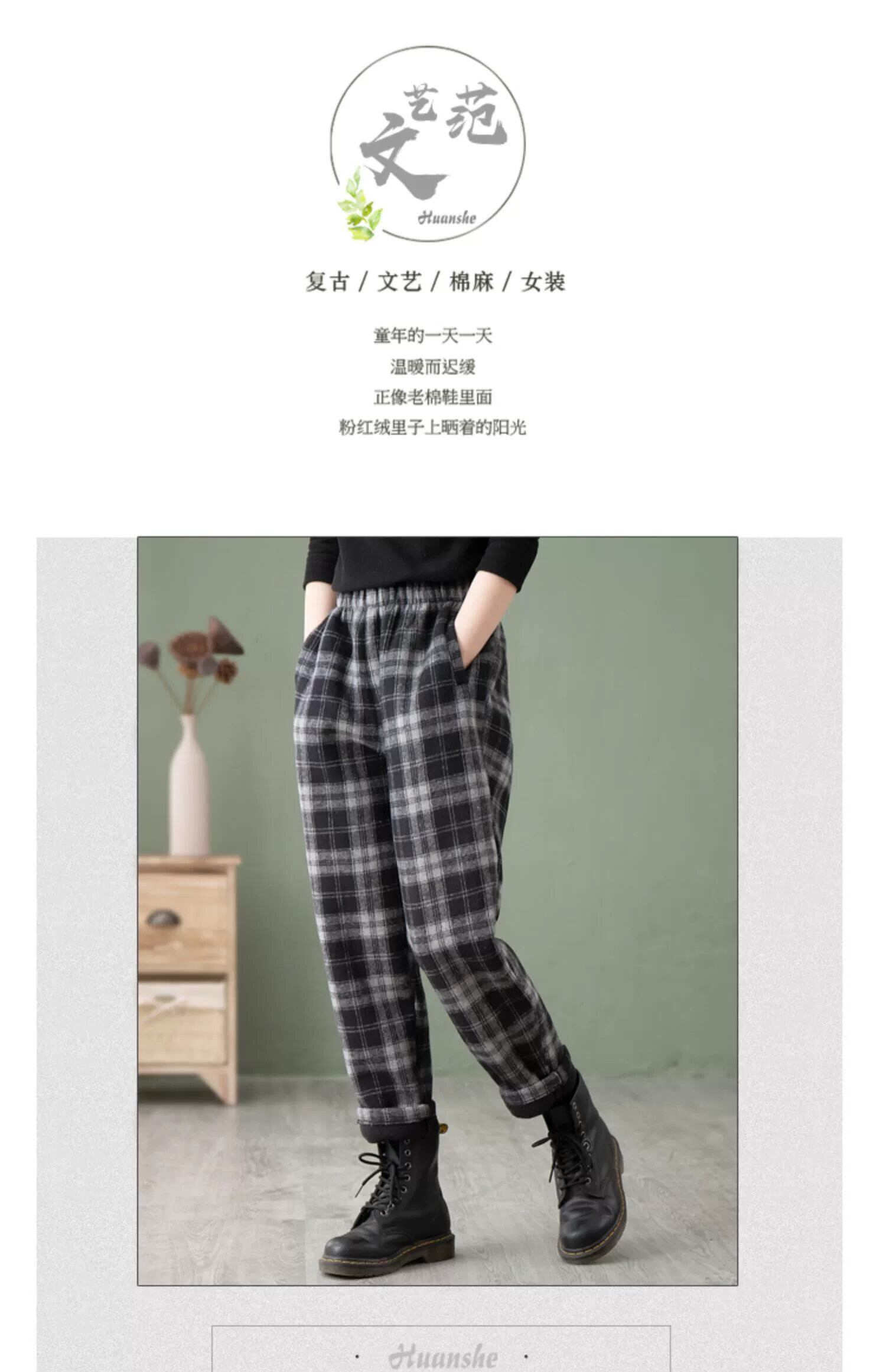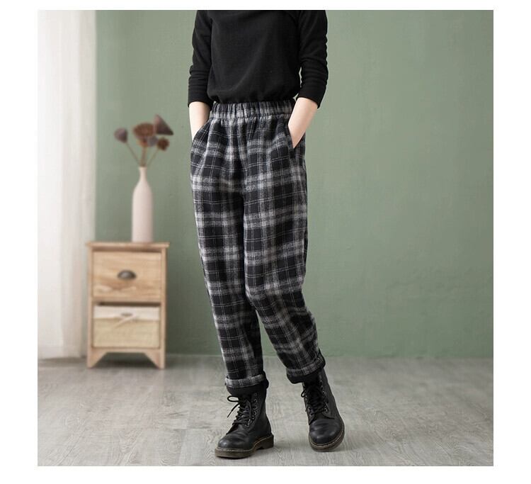 クリアランス漏れ~特別カウンター eign trade シングル レディース カット ラベル ブラッシュド プラス ベルベット チェック柄 カジュアル キャロット パンツ ウール ハーレム パンツ sine67332145332