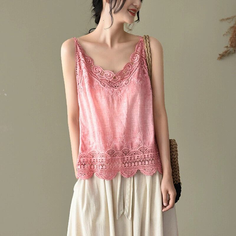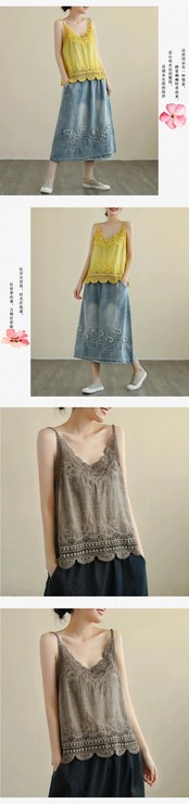 割引 eign trade ese 輸出シングルカットラベルレディース V ネックかぎ針編み中空コットンリネンキャミソールインナートップ Vネック sine44262220630