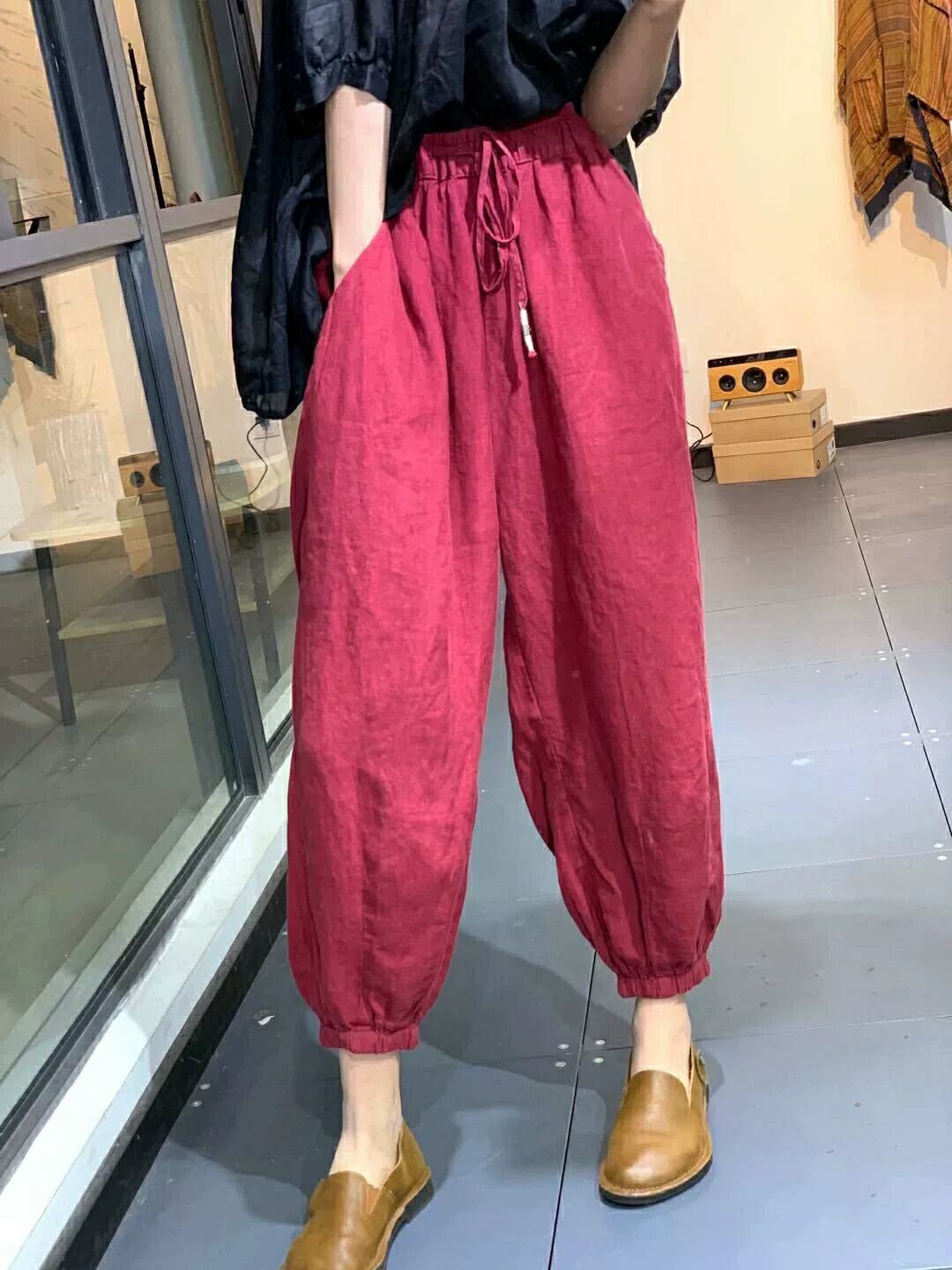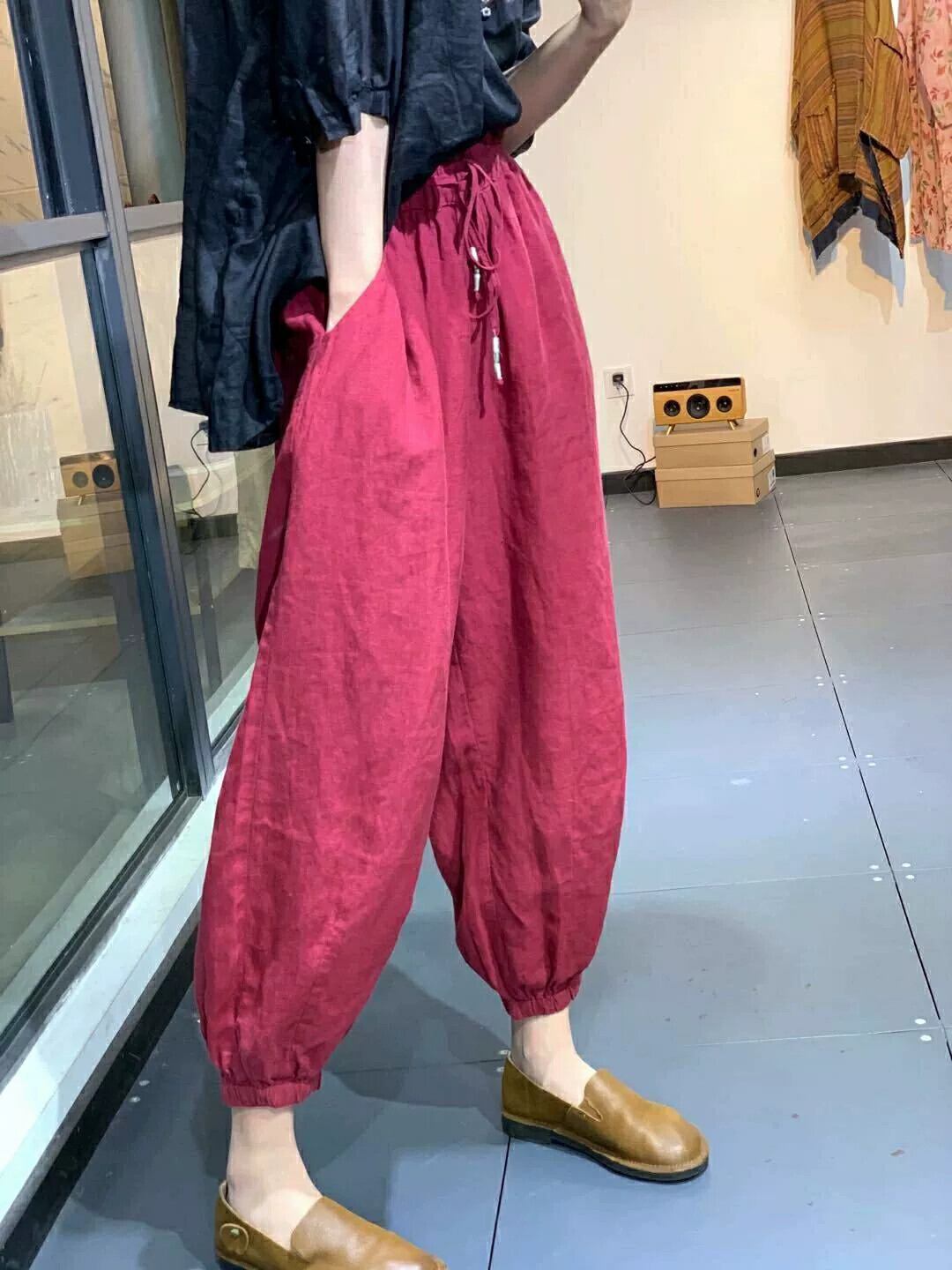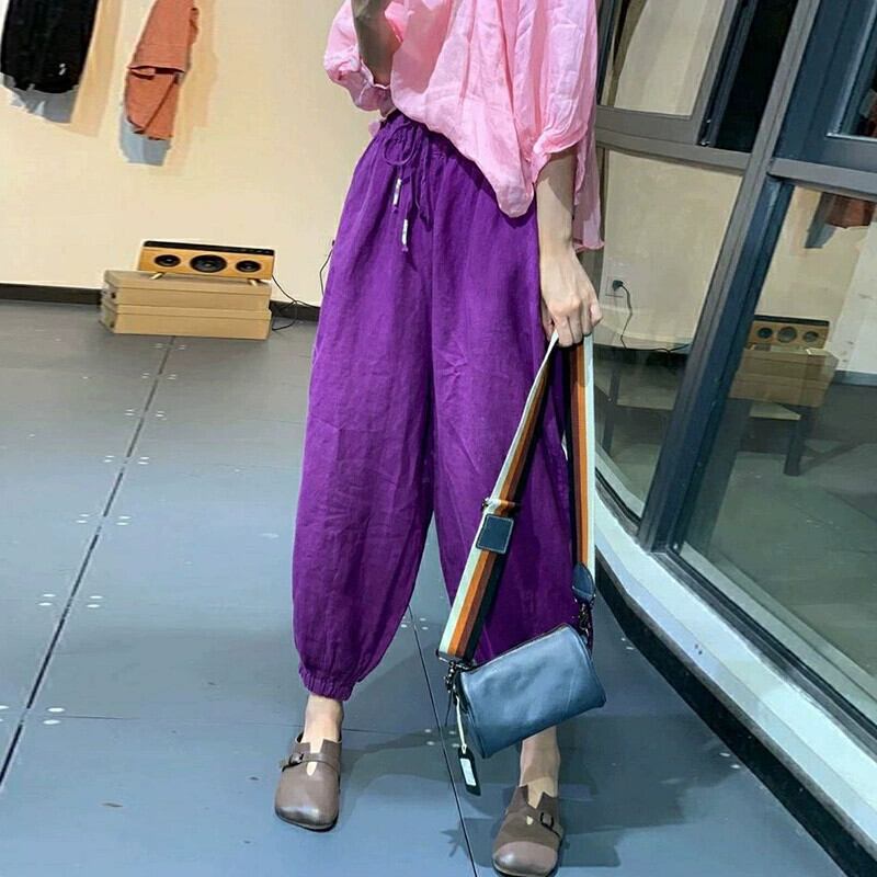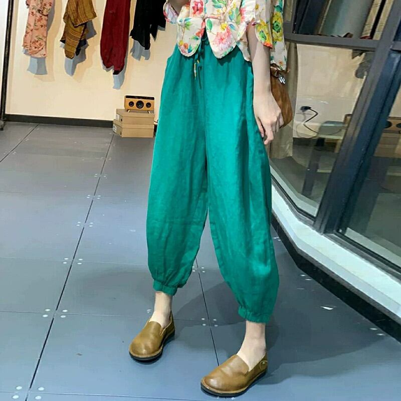 ese and eign trade オリジナル シングルテール グッズ カット ラベル ビッグネーム レディース コットン リネン ハーレム パンツ カジュアル 9 ポイント ラディッシュ リネン ランタン パンツ sine45258539912