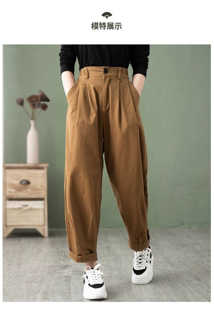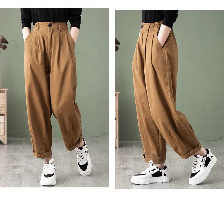 Eign Trade and South Export ラスト シングル カット ラベル レディース クリアランス レトロ ハイウエスト 9 ポイント ダッド パンツ ワイドレッグ カジュアル ハーレム パンツ sine44523531292