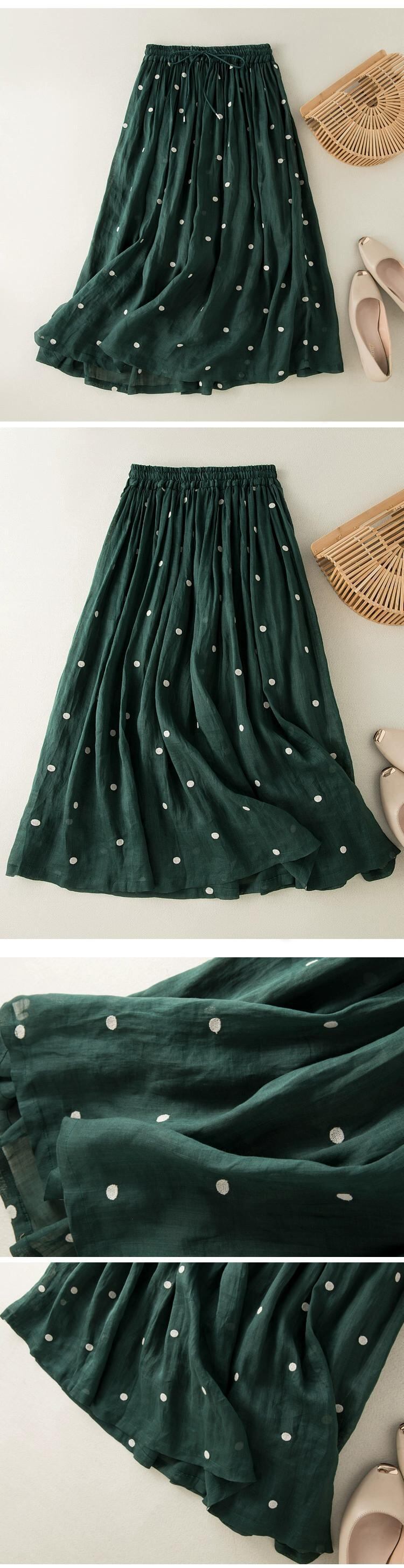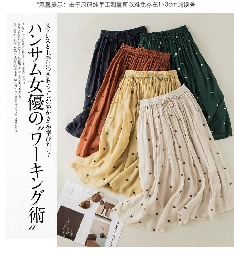 リークをピックアップ〜これらの有名な独身女性のハイウエストの水玉模様のコットンとリネンのスカートが付いた二層のラミースカート レッド sine9016301179