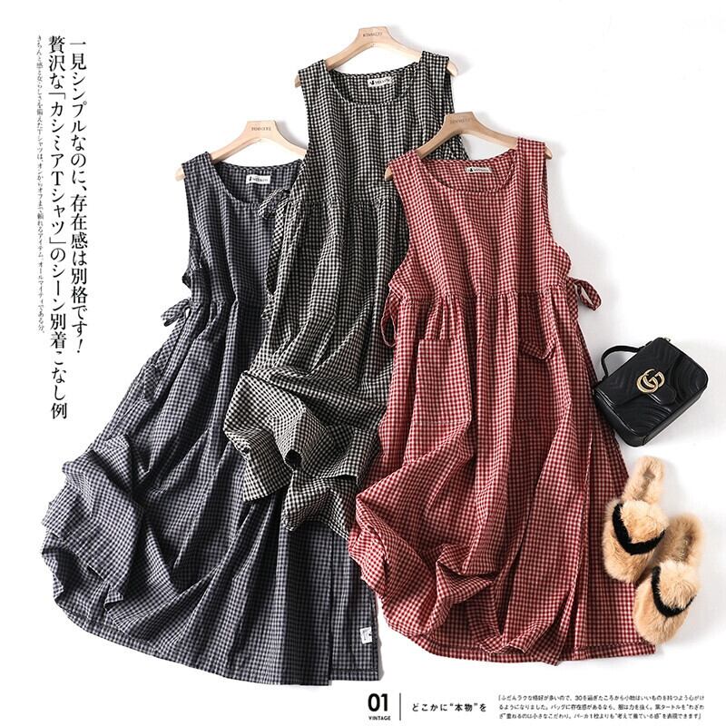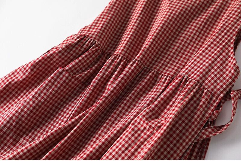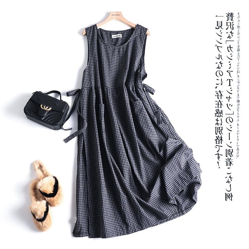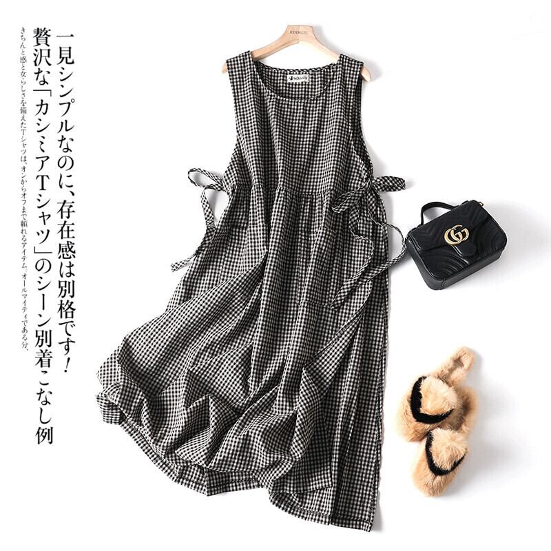 孤立した製品、eign trade、イタリアのシングルカット レーベル、ウィメンズ クリアランス、エセ チェック柄ドレス、コットン リネン ベスト ロング スカート sine51440659221