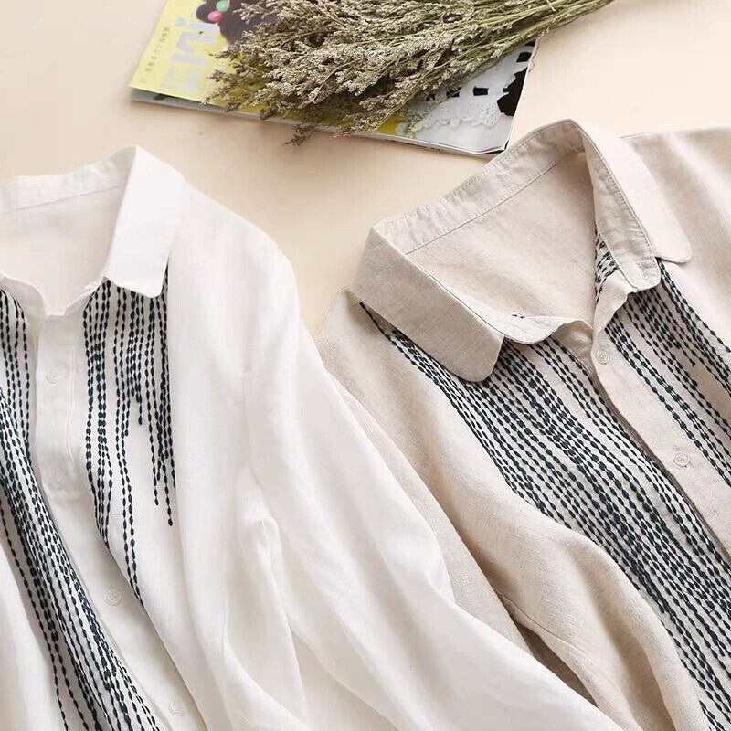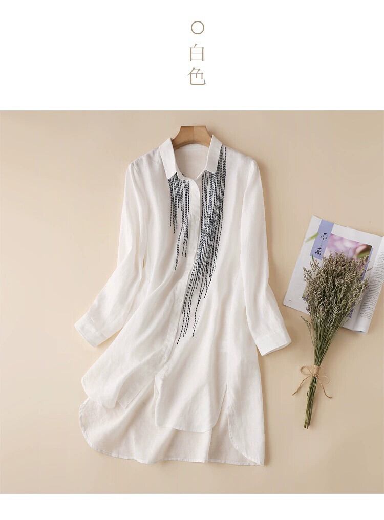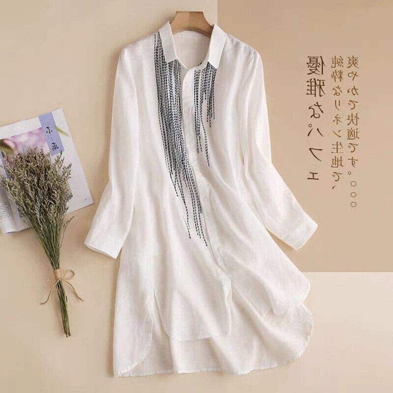 eign trade ese オリジナル単一輸出最後の単一製品女性の壊れたサイズのミッドレングス刺繍リネン シャツ スカート綿とリネンのトップ レッド コットン sine61706848741