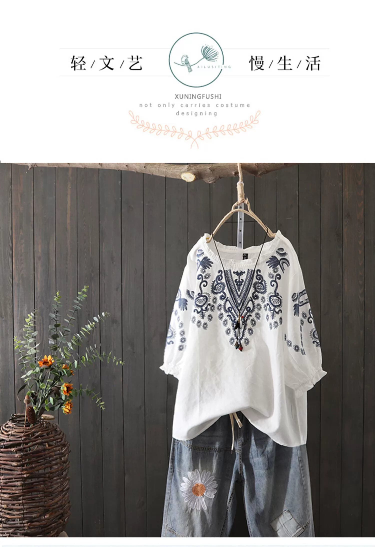 クリアランス リーク ~ 有名カウンター商品、レディース テーラーリング ラベル、レトロな刺繍が施されたランタン半袖トップス、カジュアルなコットンとリネンの T シャツ レッド Tシャツ sine59389989021