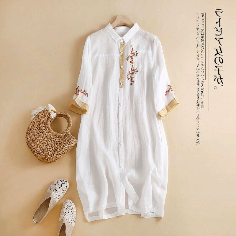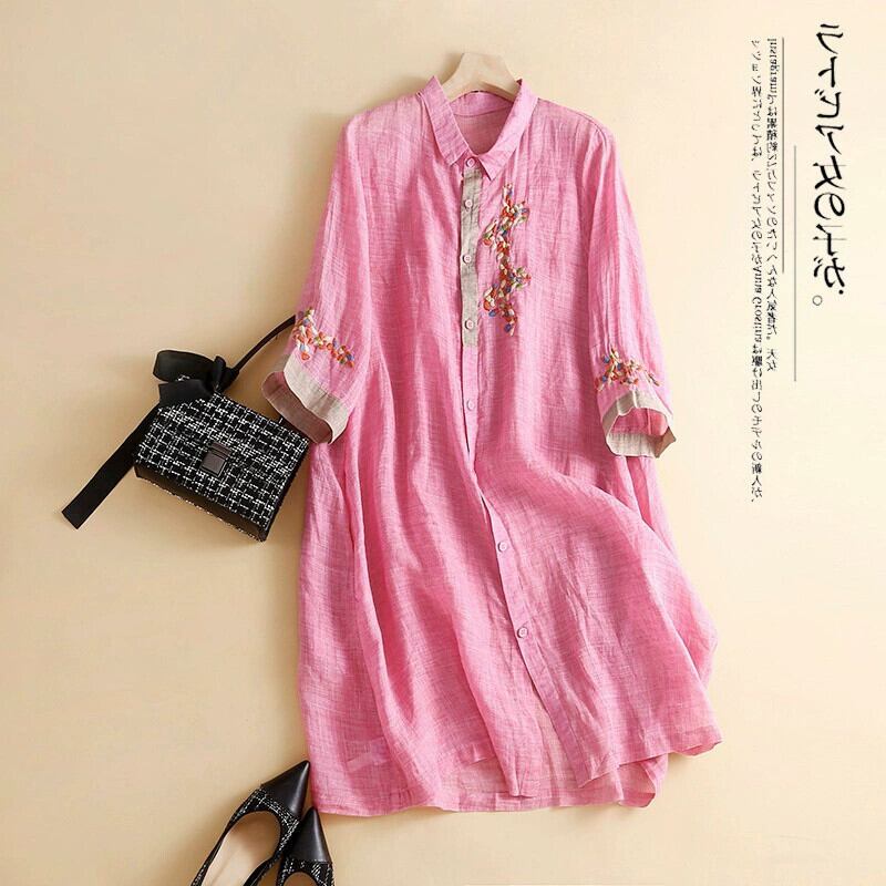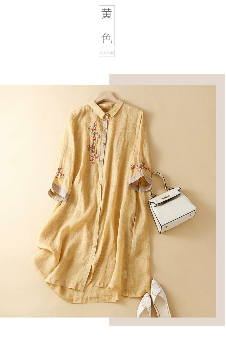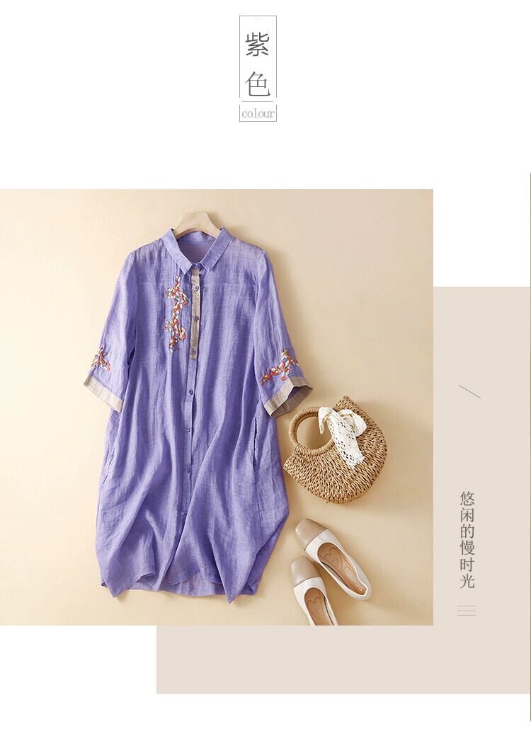 eign trade ese オリジナルの有名ブランドカットの女性のレトロなコットンとリネンのドレスルーズ刺繍リネンミッドレングスシャツスカート レッド sine40157294632