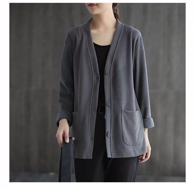秋冬のレトロなニットセータージャケットの女性、ゆったりとした大きいサイズの無地のシングルブレストの気質Vネック長袖カーディガントップ ロング 大きめサイズ オータム 秋物 ウィンター 冬物 ソリッドカラー sine22268801128