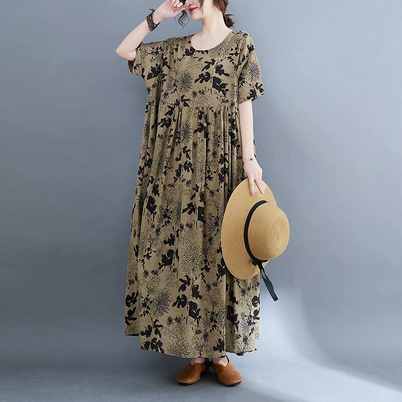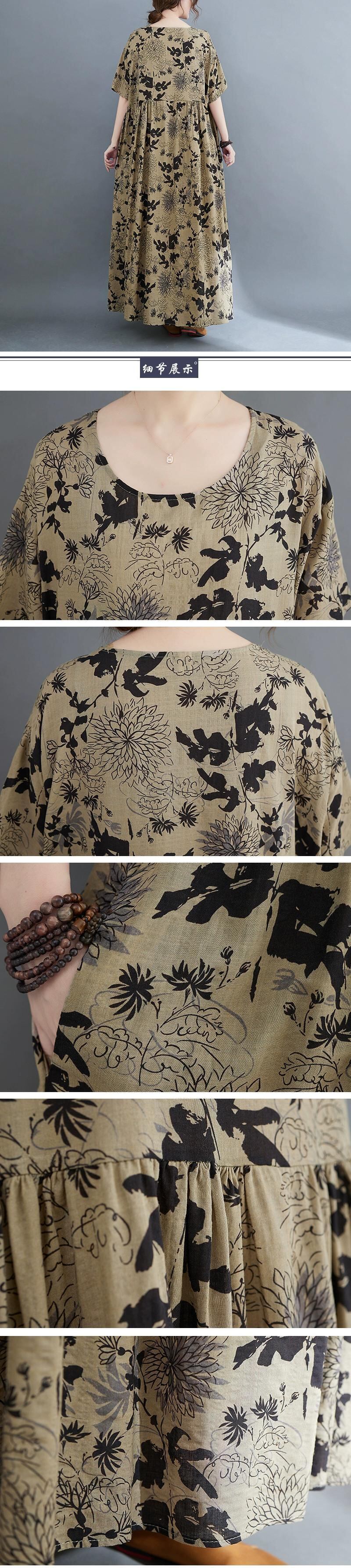 2022 ゆったりとした大きいサイズのファットシスターレトロドレス、大きなスイングと半袖リネンローブ付き ショート ハーフスリーブ 大きめサイズ sine35947775942