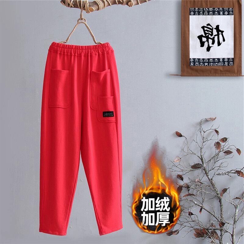 クリアランスリーク〜カジュアルハーレムパンツ女性の秋と冬ルーズな大きいサイズプラスベルベット肥厚パッチポケットアウターウェアズボンとスウェットパンツ 大きめサイズ オータム 秋物 ウィンター 冬物 sine9376538178