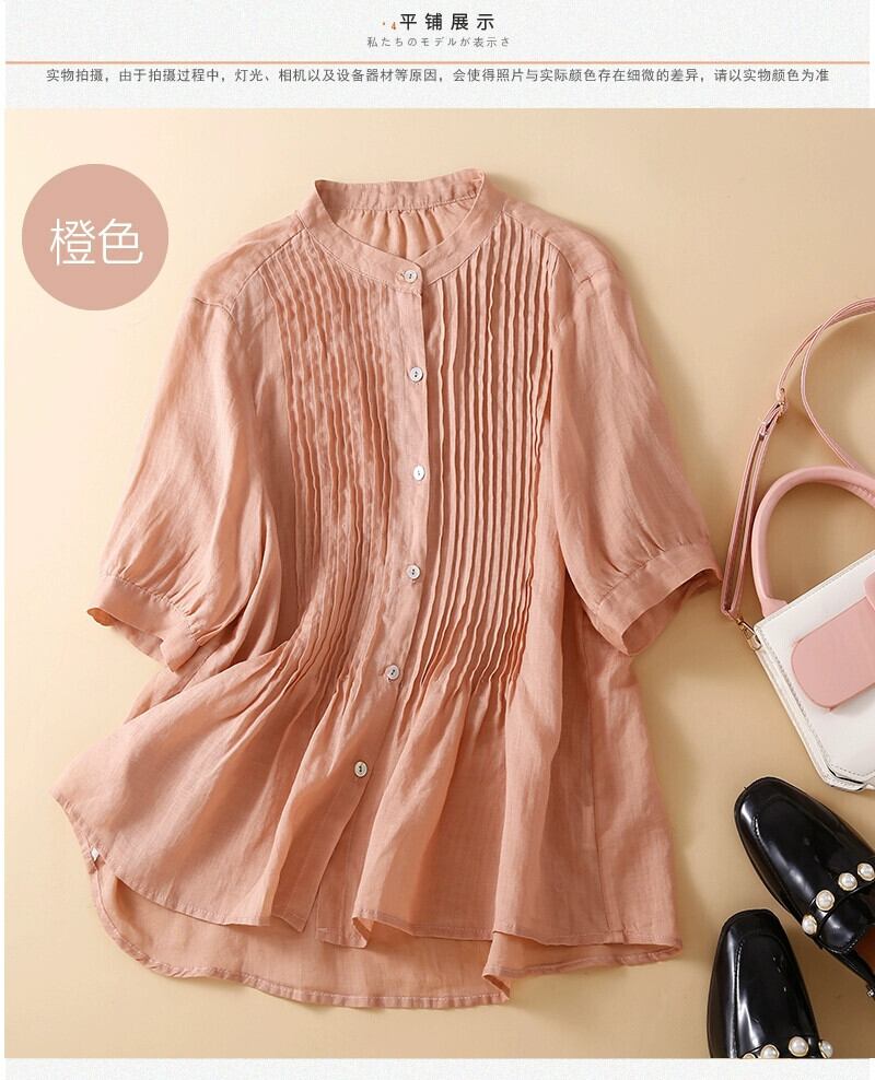 ショッピングモール クリアランス クリアランス レディース アコーディオン プリーツ ファット トップス カジュアル 大きいサイズ コットンとリネン シャツ 半袖シャツ 大きめサイズ sine48115528434